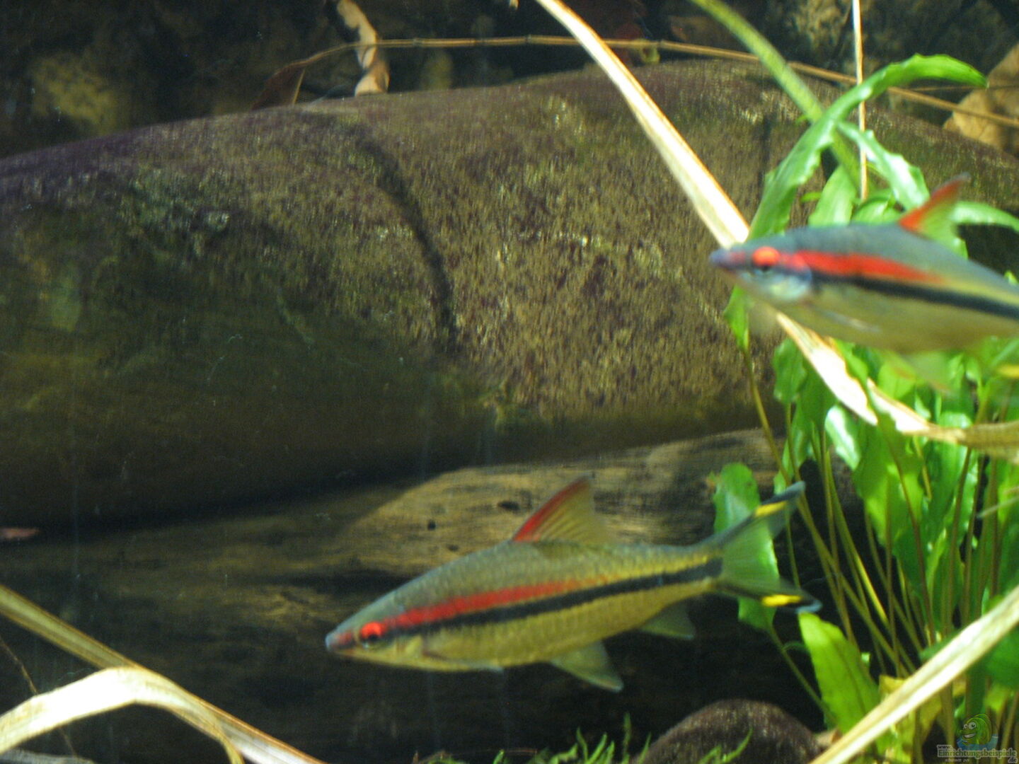 Fische: 10 Puntius denisonii Die Haltungsparameter werden im Allgemeinen folgenderma??en angegeben: Temperatur 15-26° C, PH 6, 5-7, 5, GH bis 20°, wobei ich die GH in dieser Höhe doch recht hoch finde. Ernährung: Omnivor, doch sollte der pflanzliche Anteil überwiegen Die Haltung gilt als nicht schwierig, allerdings sollen die Tiere zur Schreckhaftigkeit neigen. Die Schreckhaftigkeit hat sich bei mir allerdings sehr schnell gelegt. 21 botia striata Die Haltungsparameter werden [...]