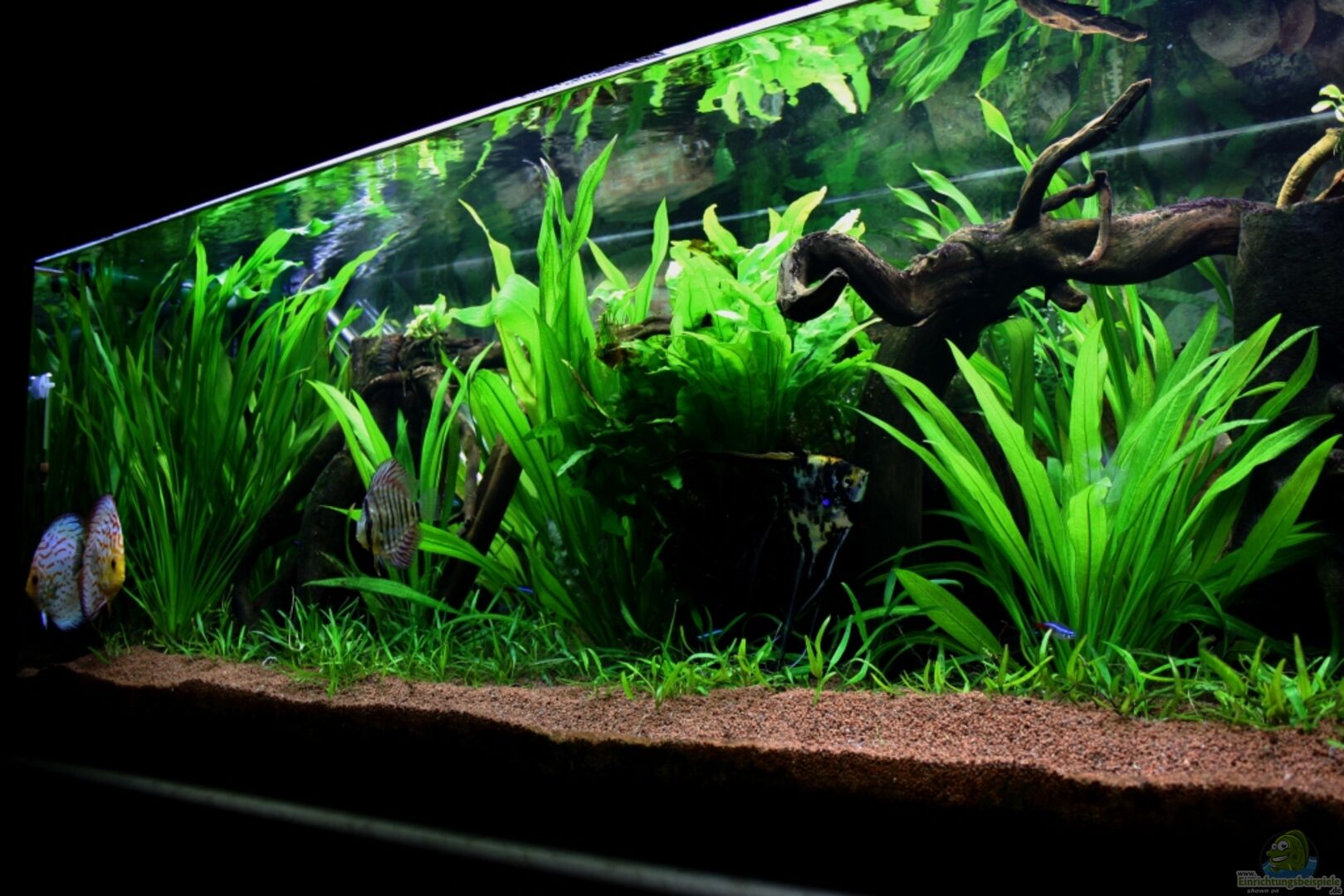 Das Untergestell besteht aus verschweisstem Vierkant-Stahlrohr (54 x 54 mm) und wurde in silbermatt pulverbeschichtet. Auf dem Gestell wurde eine 35mm Arbeitsplatte befestigt (von unten geschraubt). Es hat eine Höhe von 43 cm (incl. Arbeitsplatte). Die Oberkante des Aquariums liegt bei einer Höhe von ca. 95 cm. Das ist recht niedrig, aber für mich genau die richtige Höhe um Arbeiten im AQ verrichten zu können (bin selbst nicht so gross). Das Untergestell ist eine Eigen-Anfertigung von [...]