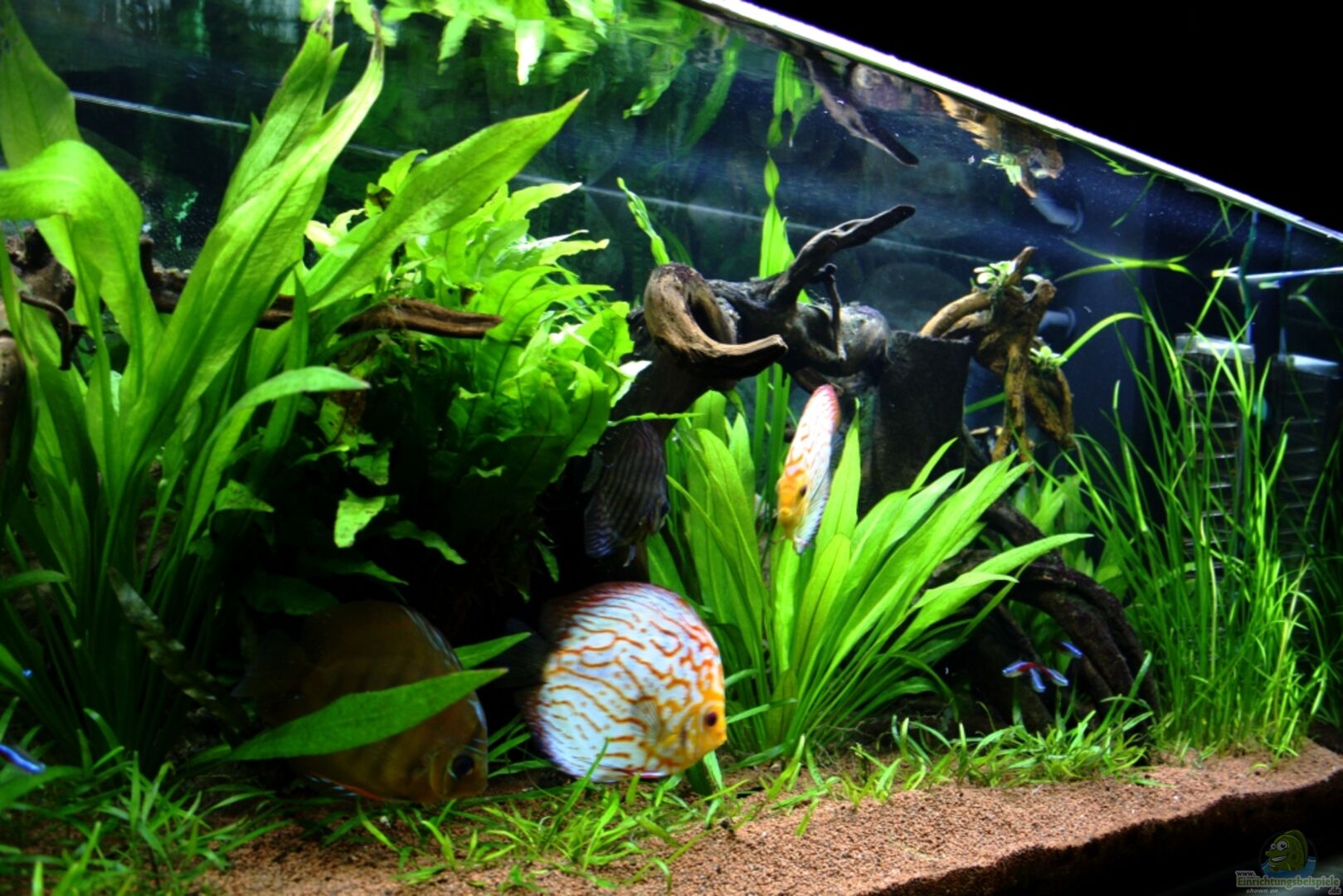 Das Untergestell besteht aus verschweisstem Vierkant-Stahlrohr (54 x 54 mm) und wurde in silbermatt pulverbeschichtet. Auf dem Gestell wurde eine 35mm Arbeitsplatte befestigt (von unten geschraubt). Es hat eine Höhe von 43 cm (incl. Arbeitsplatte). Die Oberkante des Aquariums liegt bei einer Höhe von ca. 95 cm. Das ist recht niedrig, aber für mich genau die richtige Höhe um Arbeiten im AQ verrichten zu können (bin selbst nicht so gross). Das Untergestell ist eine Eigen-Anfertigung von [...]