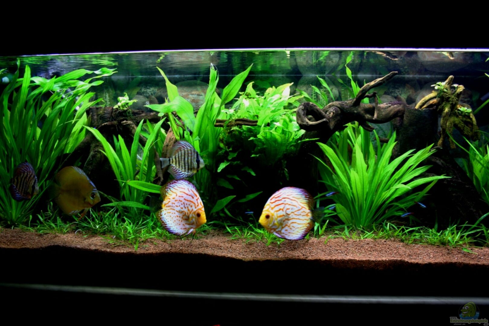 Das Untergestell besteht aus verschweisstem Vierkant-Stahlrohr (54 x 54 mm) und wurde in silbermatt pulverbeschichtet. Auf dem Gestell wurde eine 35mm Arbeitsplatte befestigt (von unten geschraubt). Es hat eine Höhe von 43 cm (incl. Arbeitsplatte). Die Oberkante des Aquariums liegt bei einer Höhe von ca. 95 cm. Das ist recht niedrig, aber für mich genau die richtige Höhe um Arbeiten im AQ verrichten zu können (bin selbst nicht so gross). Das Untergestell ist eine Eigen-Anfertigung von [...]