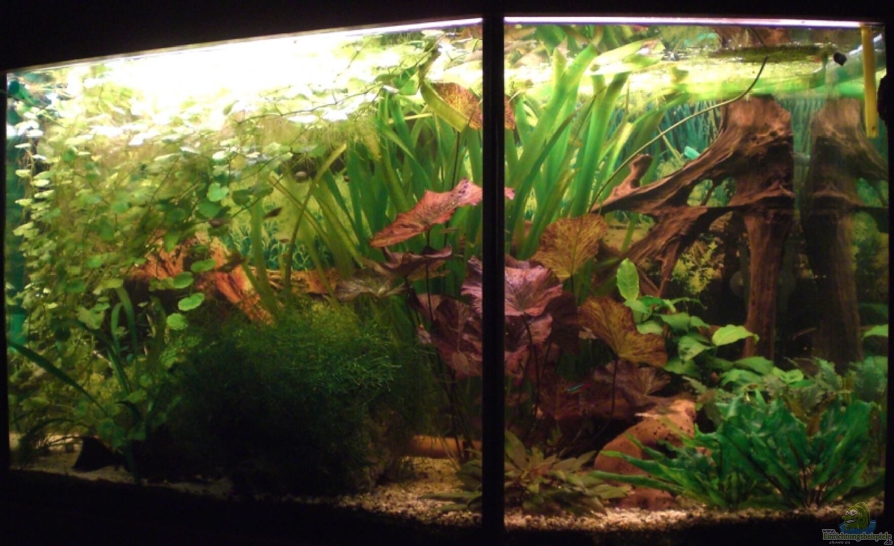 Das Becken wurde als Sonderanfertigung ersteigert, deswegen auch die spezielle, der örtlichen Umgebung angepasste Form. Die Glasstärke beträgt 10mm, und die Bodenplatte 15mm.