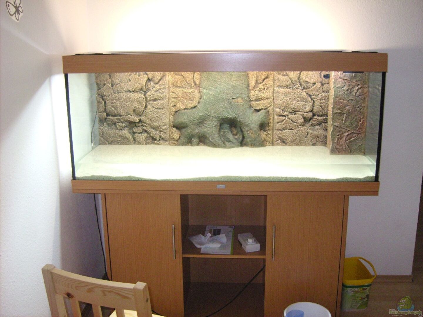 Juwel Rio 400 Buche, Rahmen-Aquarium, Juwel Rio 400 Unterschrank Buche, 3D-Rückwand 3-teilig von Juwel ´Rock-Root-Rock´, Filterabdeckung ´Cliff Ligth´ hat sich gelöst, Silikon hat nur ein paar Monate am Filter gehalten. Wasser marsch am 19.04 2010. Erste Fische am 23.04.2010 im Becken gelandet.