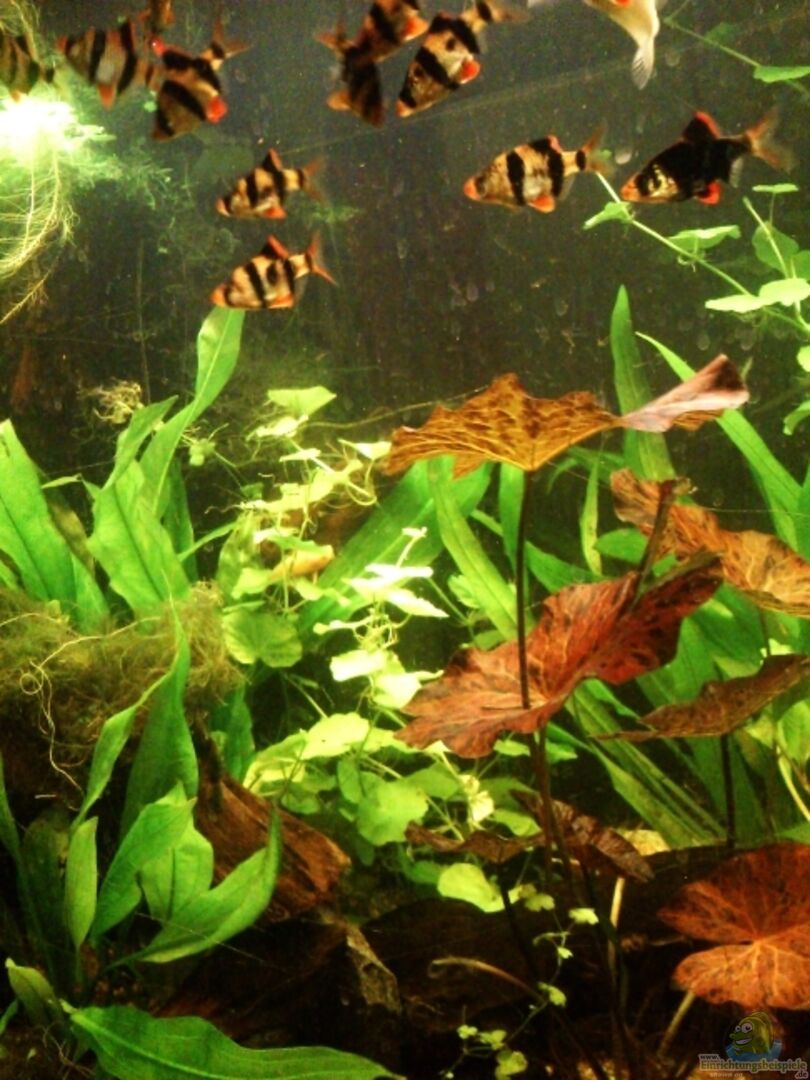 Das Becken ist mit der schmalen Seite zur Wand aufgestellt und dient als Sichtschutz. Au??erdem haben weder Unterschrank noch Becken Bohrungen weshalb ich mir mit Innenfiltern behelfen werde.