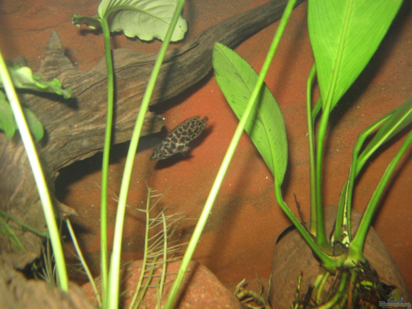 Synodontis nigriventris, 10 Stück Ctenopoma acutirostre, 4 Stück Zum genauen Wels-Besatz kann ich nichts weiter sagen, da man nie alle Fische gleichzeitig sieht. Es waren zu Beginn 10 Welse, daran dürfte sich nicht allzu viel geändert haben. Aus Anfangs drei Buschfischen wurden irgendwann 5 und jetzt wieder 4. Aber man sieht sie eher selten, da hei??t es Geduld mitbringen ;-) Einige Turmdeckelschnecken, gekauft habe ich sie vor sehr langer Zeit als Sulawesi-TDS.