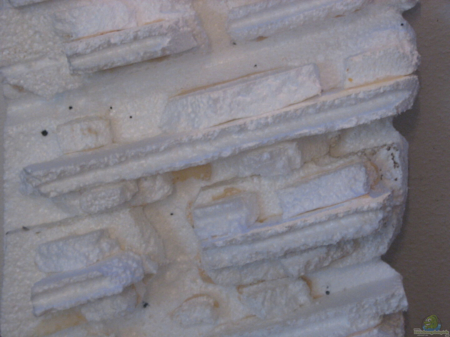 Rückwand/Steine: Momentan 3 Rückwandmodule aus Styropor und Fliesenkleber mit Graniteffekt Lack Sprühfarbe dunkelgrau und Sprühfarbe matt schwarz farblich abgerundet. Dies soll eine Sedimentsgesteinsfolge in Schieferoptik suggerieren. Weiterhin ein ebenso farblich gestaltetes, bereits als gekauft existentes und modifiziertes Felsmodul als Bodenmodul. Alles mit Kunstharz versiegelt. 5 Schieferstücke schwarz von Orbit. Da werden noch weitere folgen. Die Steinspalten in der Rückwand in [...]