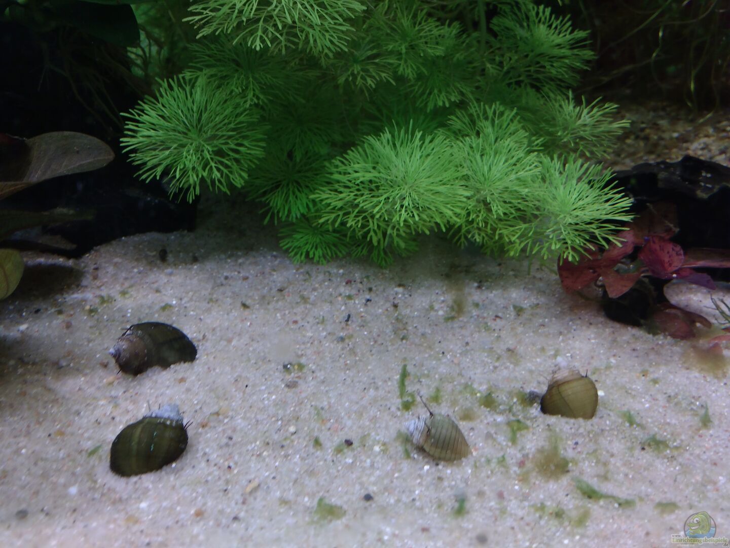 20.02.21: Die ersten Schnecken sind eingezogen. - 4x Haarige Turmdeckelschnecke - Thiara cancellata - 7x Metallpanzerwels ??? Corydoras aeneus - 2x Brauner Antennenwels ??? Ancistrus sp. - 3x Zebra-Apfelschnecke - Asolene spixi - 12x Sumatrabarbe ??? Puntius cf. tetrazona (6x Naturform, 2x Gold, 2x Kobalt, 2x Moosbarbe) Als weiterer Besatz habe ist noch folgendes geplant: - Purpurprachtbarsche