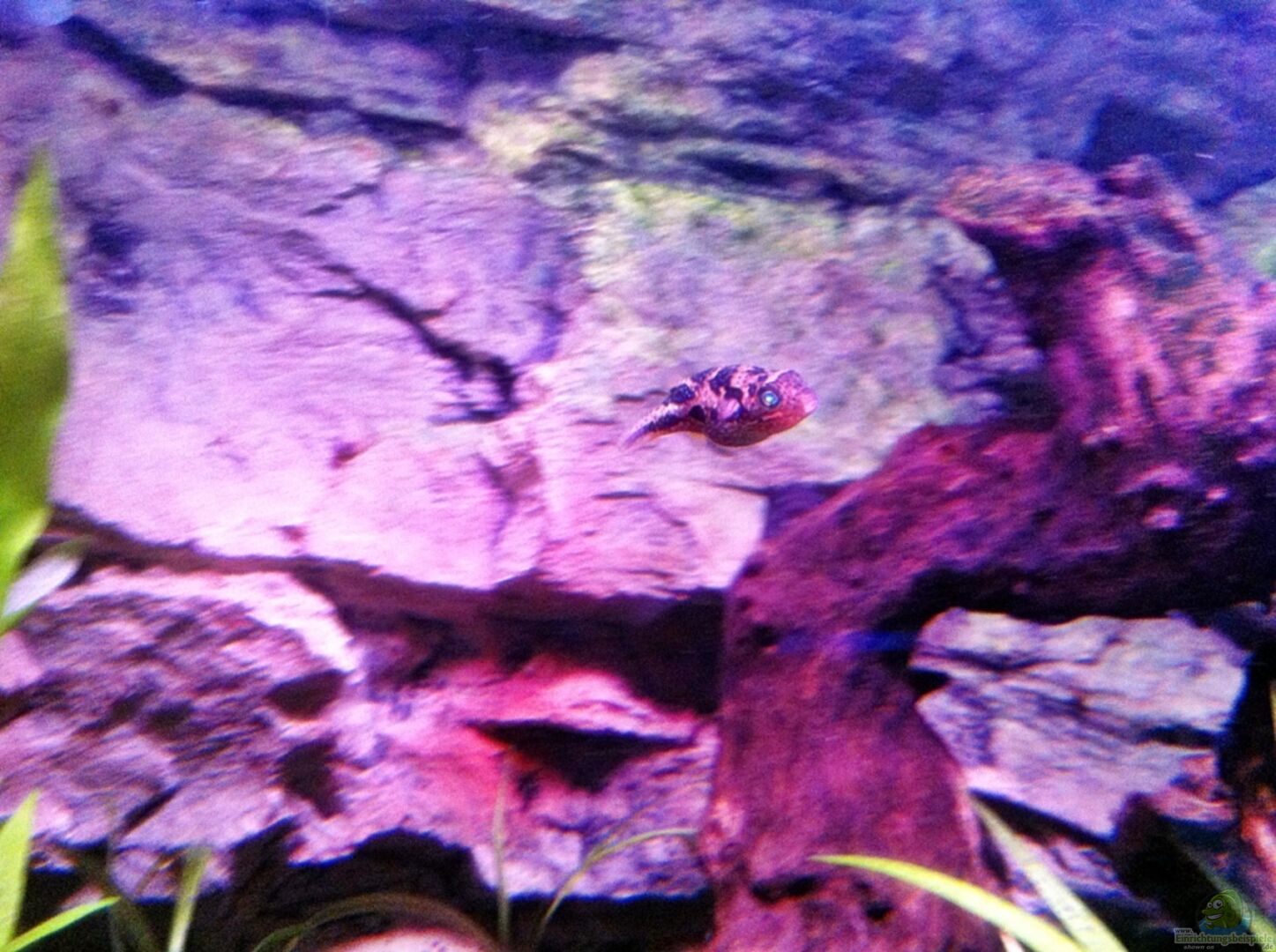 drei (1m/2w) Carinotetraodon travancoricus drei (1m/2w) Dermogenys ebrardtii zwei Garra ceylonensis zwei Apfelschnecken ca. zehn Turmdeckelschnecken zehn Posthornschnecken