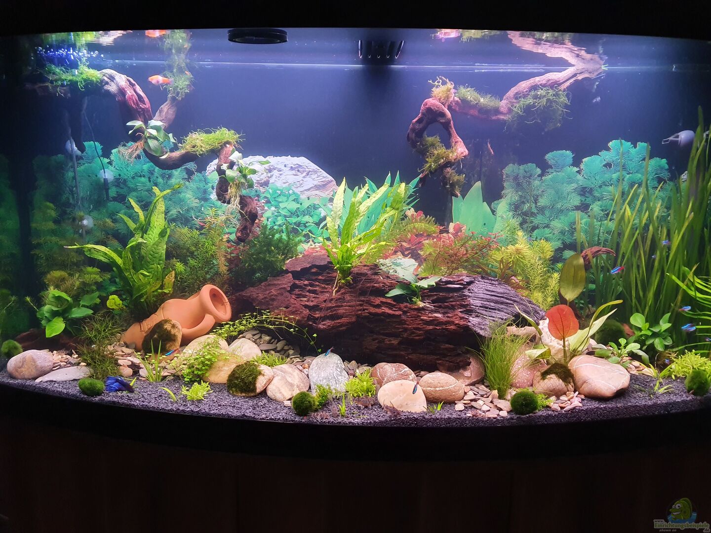 Das Becken mit 260 L wurde komplett als Gebrauchtbecken mit dazugehörigen Unterschrank gekauft und ist ein Becken der Firma Fluval. Der Filter Zu- und Ablauf sind im Beckenboden.