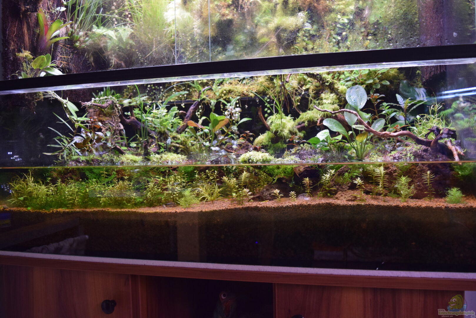 Umgestaltung am 19.11.2016 Der sog. Wurzelbaum wurde in seine Bestandteile zerlegt und die Einzelstücke finden sich nun teilweise in der Neugestaltung des Bachlaufes wieder. Weiterhin wurde Spiderwood hinzugefügt, welches mit Orchideen und Epiphyten bepflanzt ist und an der Decke des Paludariums befestigt ist.