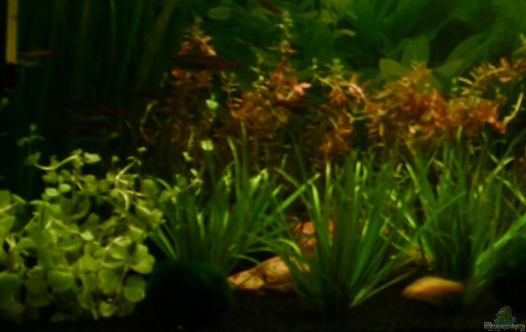 Vallisneria spiralis Cryptocoryne becketii petchii Cryptocoryne wendtii MiOya Lysimachia nummularia aurea Rotala rotundifolia Blyxa japonica Mooskugeln Wasserlinsen Gedüngt wird mit dem Dennerle Perfect Plant Düngesystem (S7 VitaMix, V30 Complete und E15 Fer Activ)