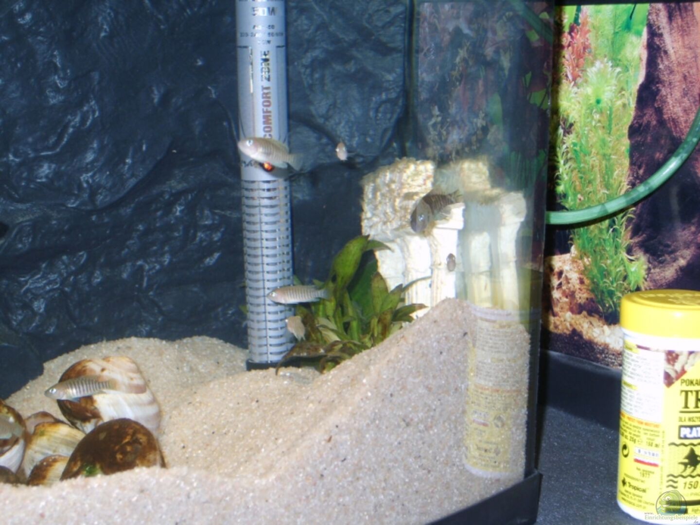 2 Ableger Echinodorus aus eigenem Bestand aus 120 cm Becken Muschelblumen (Schwimmpflanzen) um den starken Lichteinfall zu reduzieren und Nitrat abzubauen. Gedeien trotz hohen pH und GH Wertes sehr gut.