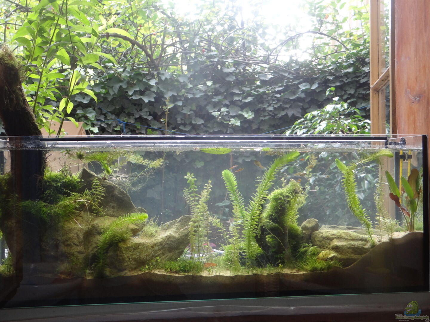 Das Becken ist ma??gefertigt, damit es genau ins Kastenfenster hineinpasst. Da die Fenster schon älter sind, wird das Aquarium sowohl jahreszeitlichen wie auch täglichen Temperaturschwankungen unterliegen.