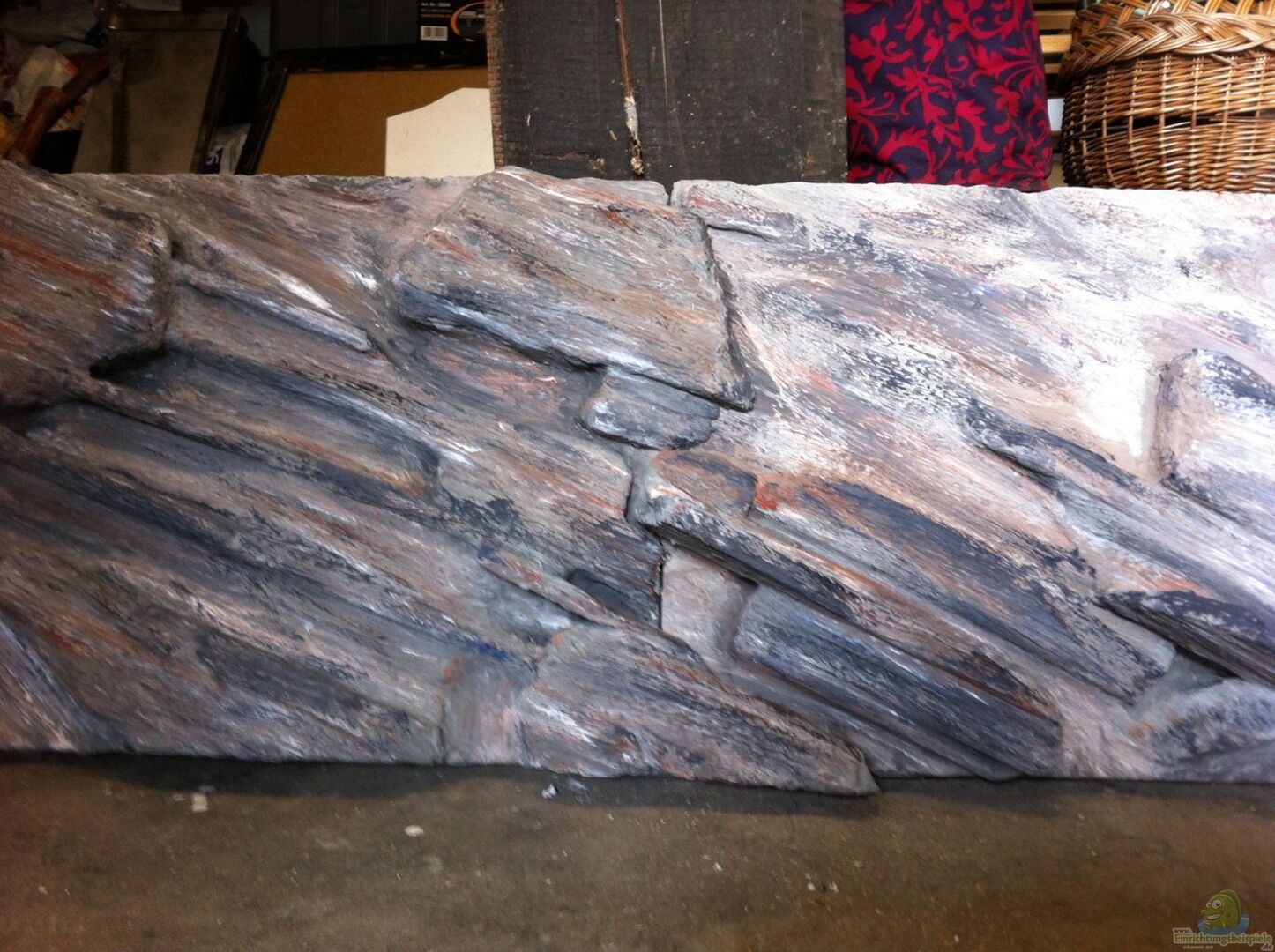 zweiteilige 3D-Rückwand (Eigenbau) bestehend aus: 40mm Styroporplattem 2kg handelsüblicher Zement Acrylfarbe schwarz, wei??, braun, blau Epoxydharz zum versiegeln mit Küchensilikon ins Becken punktuell verklebt Bilder separat hochgeladen - Bauphasenbeschreibung wird nachgereicht. Vielleicht als Ansatz für den Heimwerker: Dauer ca. 15 Stunden in der Garage und Kostenfaktor ca. 25??? (anstatt 270??? für eine Standardrückwand ;-)
