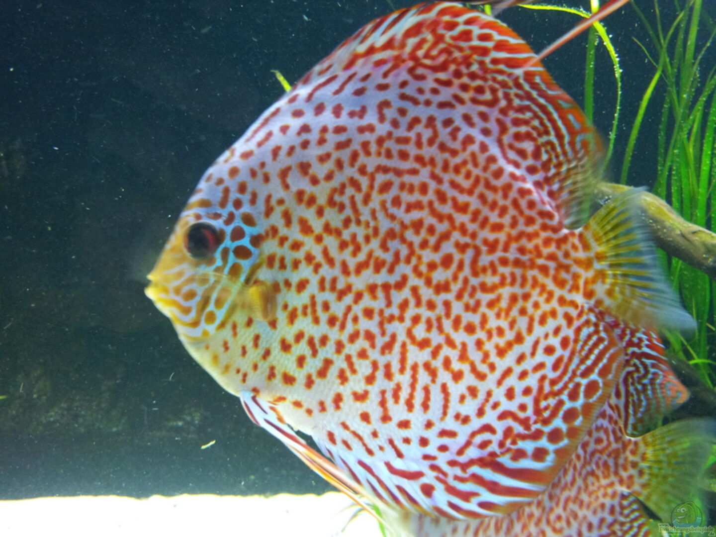 11 Symphysodon aequifasciatus 8x Rottürkis und 4 x Green Red Spottet aus der Diskuszucht Piwowarski Er wird als `König der Aquarienfische` bezeichnet, da er durch seine ruhige Schwimmweise sehr majestätisch wirkt. Der Name Diskus steht für den besonders abgeflachten und fast runden Körper mit niedrigen, aber sehr langen Flossen. Der Mund ist winzig. Beide Geschlechter können bis zu 22 cm lang werden, wobei so um die 16 - 18 cm der Durschnitt sein dürfte, und lassen sich nur [...]