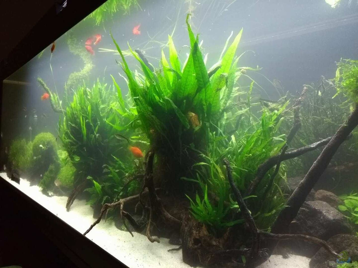 Die Abmessungen des Beckens sind entgegen dem aktuellen Aquascaping-Trend, bei dem die Becken eher hoch als breit sind, mit einer Tiefe von 50cm und einer Höhe von ca. 42cm genau richtig, zur Erzielung einer guten Tiefenwirkung. Das Gewicht des Beckens ist gemä?? alter DIN 1055 noch stellbar in einer Mietwohnung ohne Nachweise (Stahlbetondecke). Das Aquarium wird nach einem Umzug gegenwärtig als Biotop-Aquarium neu eingerichtet. Die Bilder zeigen noch das alte Aquarium.