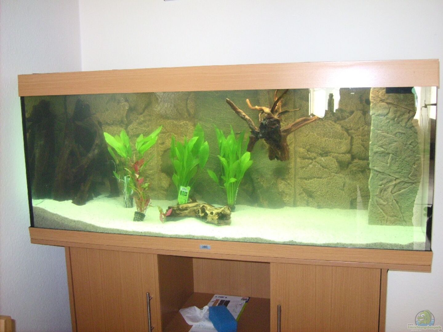 Juwel Rio 400 Buche, Rahmen-Aquarium, Juwel Rio 400 Unterschrank Buche, 3D-Rückwand 3-teilig von Juwel ´Rock-Root-Rock´, Filterabdeckung ´Cliff Ligth´ hat sich gelöst, Silikon hat nur ein paar Monate am Filter gehalten. Wasser marsch am 19.04 2010. Erste Fische am 23.04.2010 im Becken gelandet.