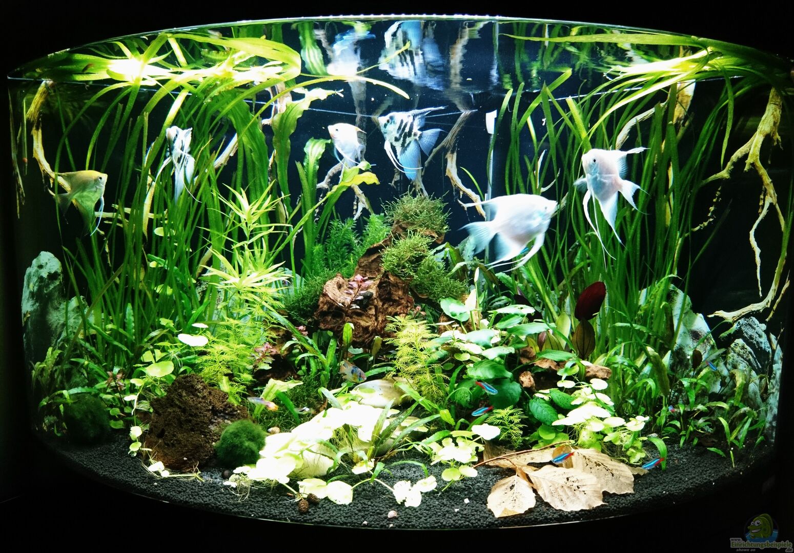 Das mystische Rückwand Poster habe ich mit Fotofix von Hobby angebracht. Eine einzige kleine Blase an der oberen Kante wollte von Anfang an nicht kleben und so ist sie geblieben. Wenn man es nicht wei??, fällt sie nicht auf. Dieses Aquarium wird standard mä??ig mit einer LED Leiste geliefert. Ich hatte noch eine kurze runde LED vom alten Aquarium. Diese habe ich an dem Deckel hinten mit Saugnäpfen und Hei??kleber fixiert. So ist die Ecke besser zu sehen.