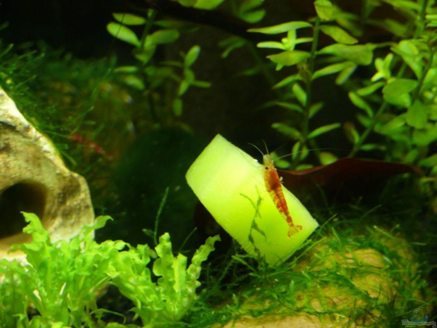 8 Caridina cf. cantonensis ´Crystal red´ (Kristallrote Zwerggarnelen) TDS 2 Geweihschnecken (Clithon sp.), 1 x braun, 1 x gelb gestreift