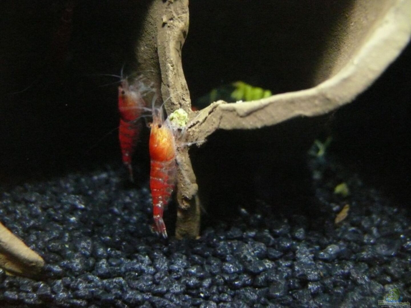 8 Caridina cf. cantonensis ´Crystal red´ (Kristallrote Zwerggarnelen) TDS 2 Geweihschnecken (Clithon sp.), 1 x braun, 1 x gelb gestreift