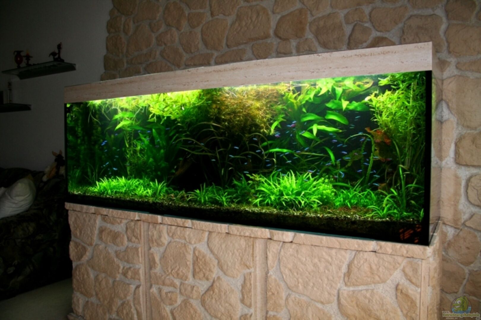 im Wohnzimmer montiert 2002 neue Eigenbaurückwand am 25.07.07 eingebaut Kamera Canon EOS350D Die meisten Bilder wurden ohne Blitz & einige mit Stativ aufgenommen. Ich wollte versuchen, mit diesem Projekt das Flu??ufer eines Südamerikanischen Flu??es nachzugestalten. Mir ist schon klar, dass in der Natur nicht so ein Pflanzenreichtum und auch nicht so farbloses Wasser vorhanden sind. Da mein Becken aber im Wohnzimmer unserer Wohnung steht bin ich etwas von der naturnahen Einrichtung [...]