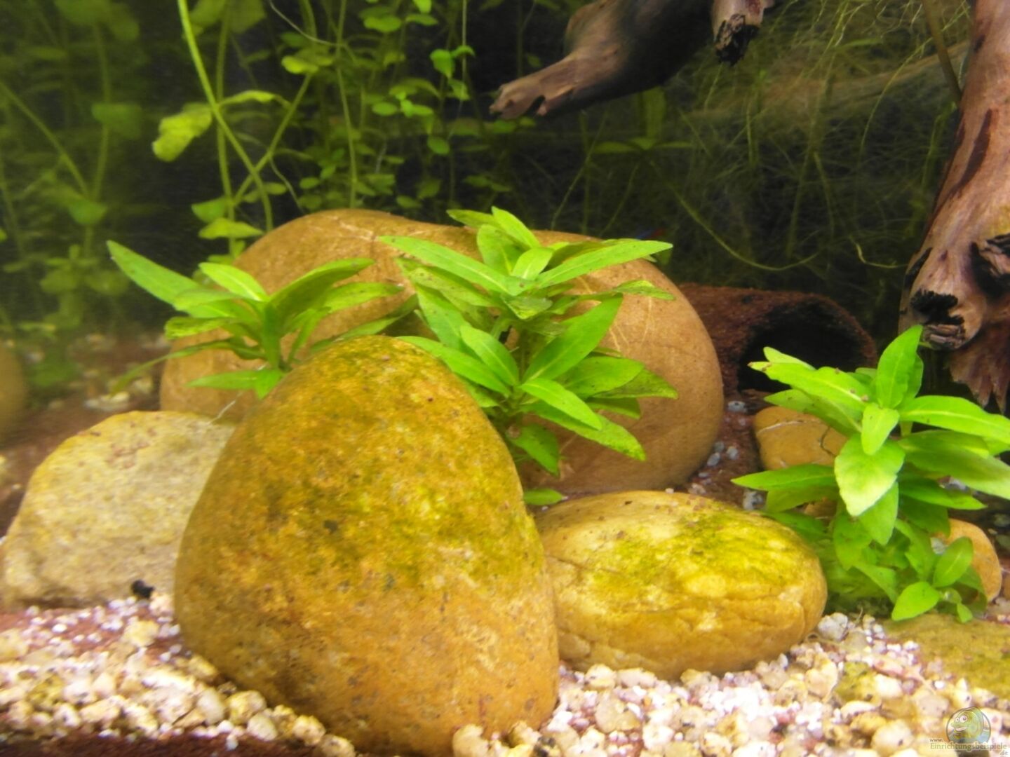 Abgestimmt auf die Bewohner des Beckens, welche einen eher dunkleren Lebensraum bevorzugen und den daraus resultierenden Lichtverhältnissen verwendete ich Pflanzen, welche auch mit wenig Licht zurechtkommen. Aus eigener Erfahrung möchte ich folgendes anmerken: Nicht jede Lichtstärkenempfehlung trifft in der Praxis auf "helle Begeisterung" :-) Zum Beispiel gedeiht meine Staurogyne repens, welche laut Literatur eher hohe Beleuchtungsstärke wünscht, wunderbar in meinem Becken, [...]