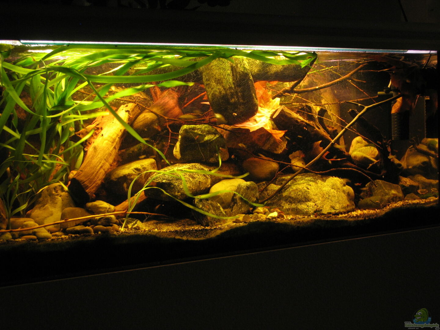Das Becken läuft seit Juli 2006, das aktuelle Layout allerdings erst seit ca. 1, 5 Jahren Beckendaten: Standardbecken, Floatglas, stossverklebt mit schwarzem Silikon. Unterbau aus Y-Tong Steinen. Als Auflage eine 27 mm Spanplatte. Darauf liegt als Druckausgleich eine passend zugeschnittene Campingmatte. Das ganze Gebilde wurde anschlie??end verkleidet mit Sperrholz Pappel und mit wei??er Rauhfasertapete tapeziert. Auf der linken Seite des Beckens steht eine Säule aus Spanplatten, die ebenfalls [...]