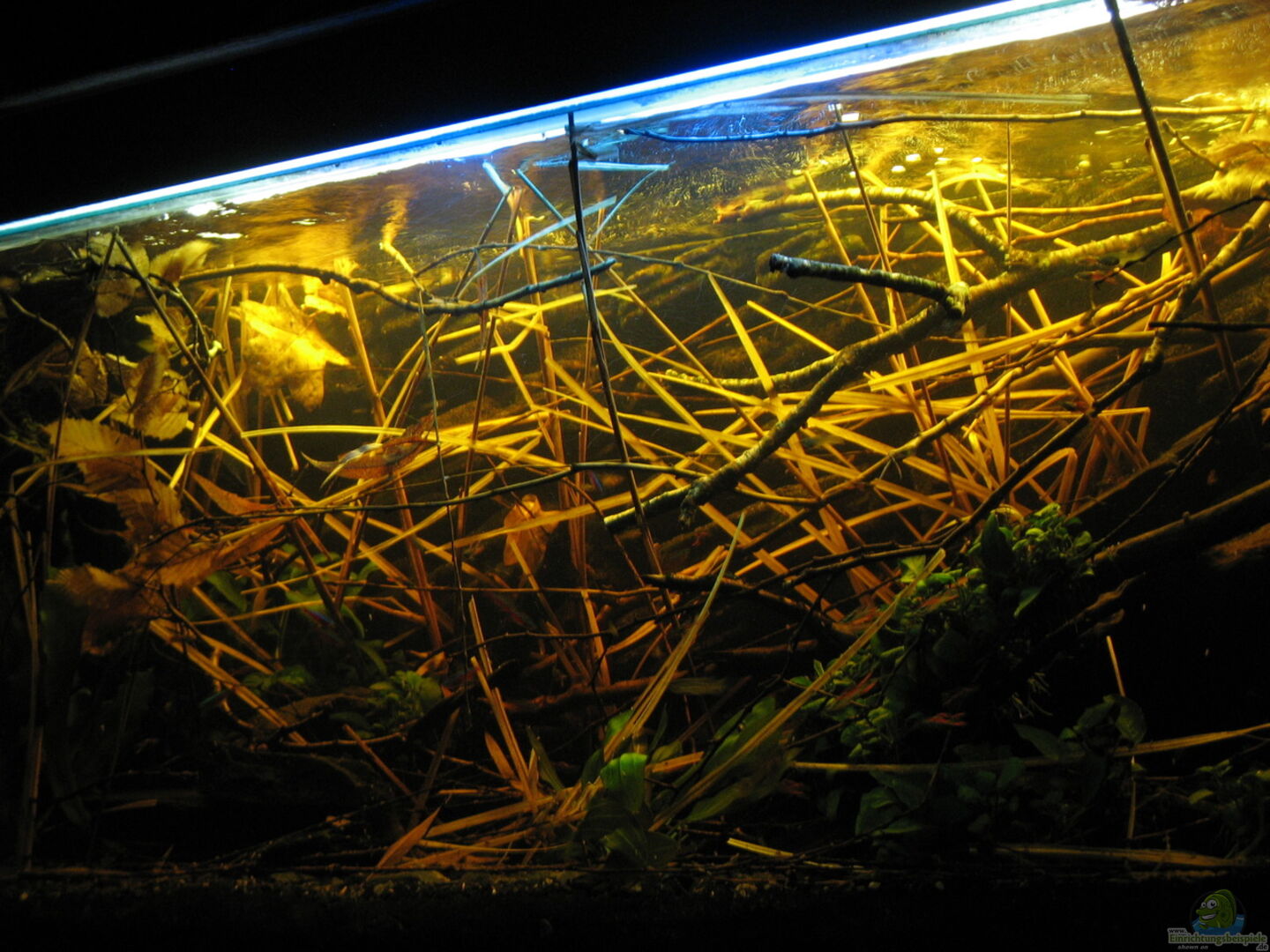 Standard Becken aus Float Glas, sto??verklebt mit Mittel- und Seitenstegen. Aquarien Aluminium Abdeckung "Stratos" von Gie??emann inkl. T5 Leuchtbalken. Momentan werden aber 2 T8 Leuchtbalken benutzt. Unterbau aus Ytong Steinen, verkleidet mit Sperrholz Pappel und wei??er Rauhfasertapete tapeziert. Daneben die Techniksäule aus Spanplatten, ebenfalls tapeziert. Verdeckt Filter, Kabel, UVC Klärer etc. und wird bei Bedarf einfach beiseite geschoben. Die Idee hinter der Gerstaltung: . [...]