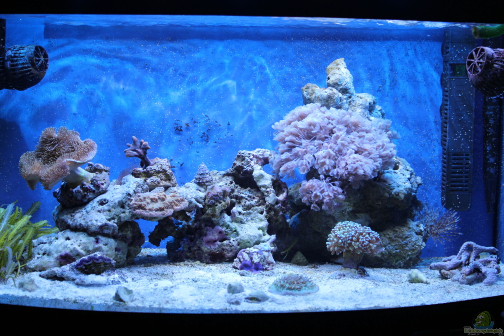 - Becken mit gebogener Frontscheibe, deshalb die unterschiedlichen Breiteangaben. - Die Rückwand und die rechte Seitenscheibe ist mit einer dunkelblauen Folie beklebt worden. - Plexigla??bodenplatte zum Schutz vor Gla??bruch - Plexigla??abdeckscheibe