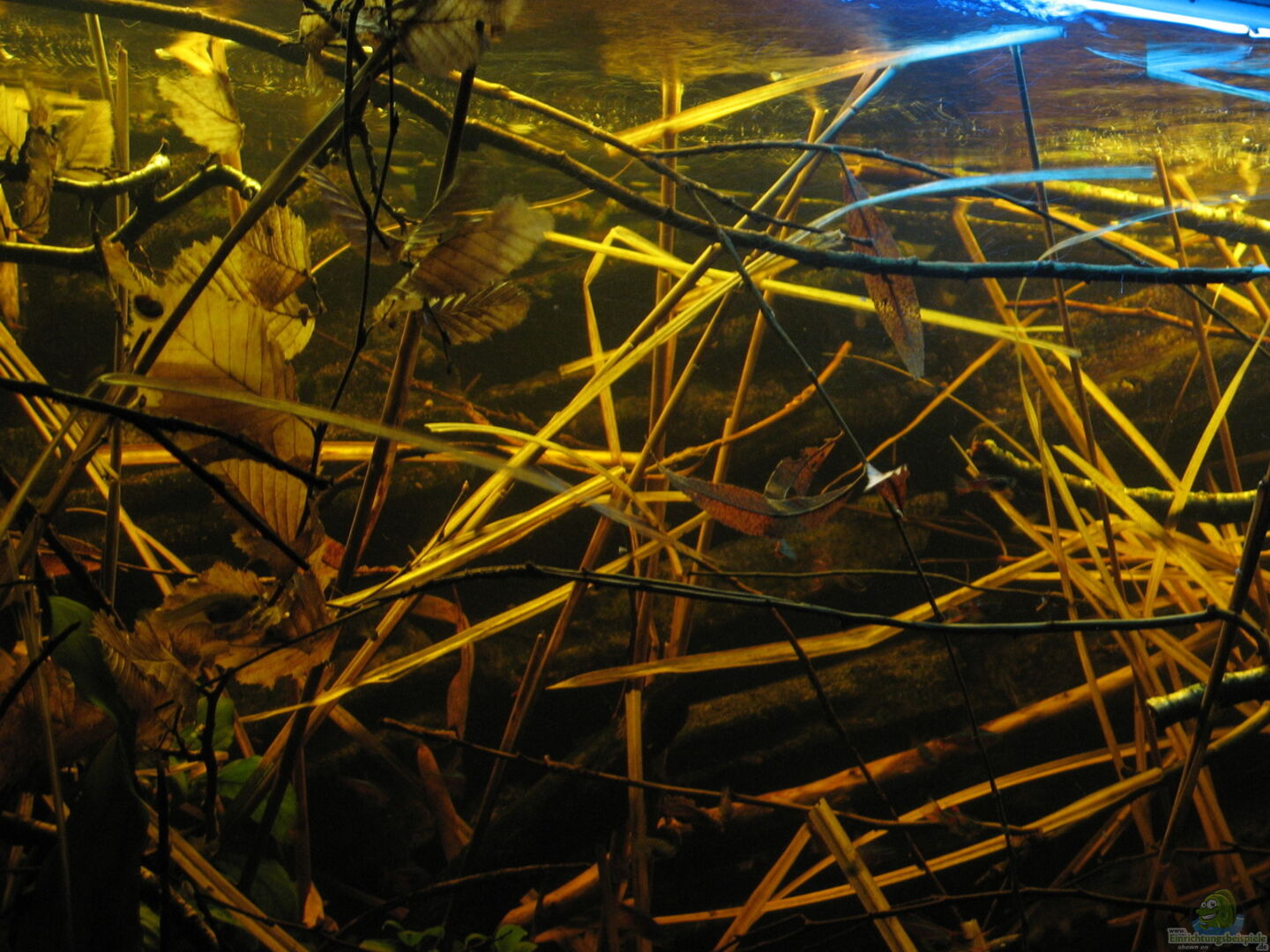 Standard Becken aus Float Glas, sto??verklebt mit Mittel- und Seitenstegen. Aquarien Aluminium Abdeckung "Stratos" von Gie??emann inkl. T5 Leuchtbalken. Momentan werden aber 2 T8 Leuchtbalken benutzt. Unterbau aus Ytong Steinen, verkleidet mit Sperrholz Pappel und wei??er Rauhfasertapete tapeziert. Daneben die Techniksäule aus Spanplatten, ebenfalls tapeziert. Verdeckt Filter, Kabel, UVC Klärer etc. und wird bei Bedarf einfach beiseite geschoben. Die Idee hinter der Gerstaltung: . [...]