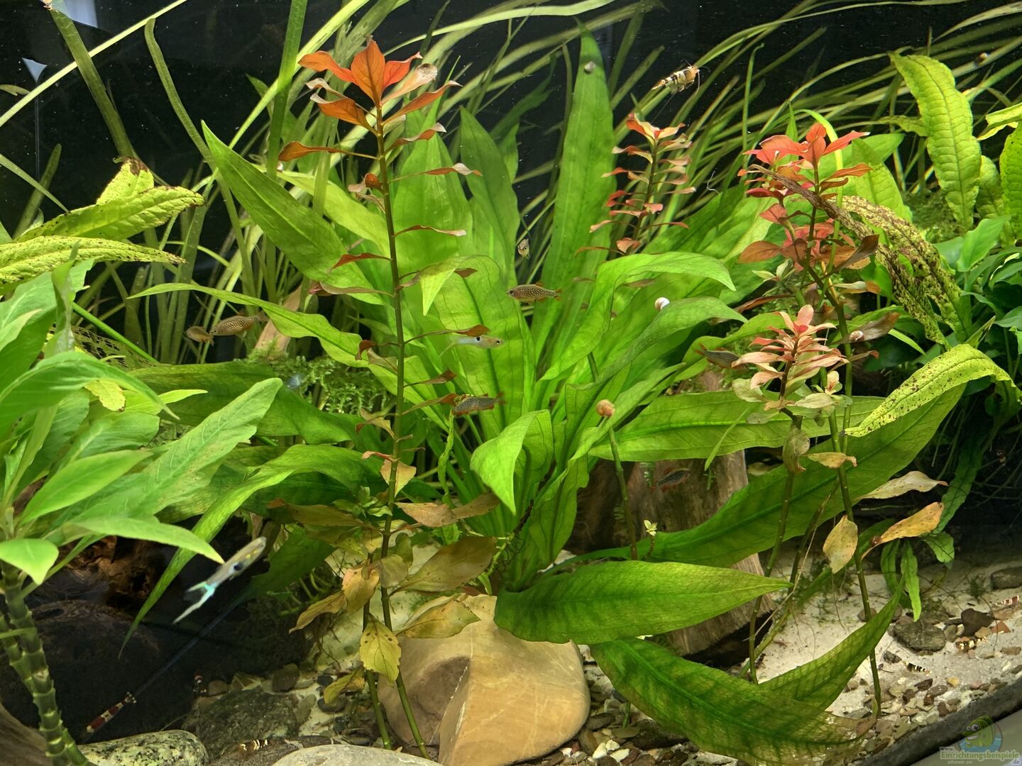 Massaquarium mit Optiwhiteglas auf 3 Seiten. Das Möbel dazu wurde bereits mit einer passenden Kiesblende von 5cm auf drei Seiten gebaut. Die Rückwand ist aussen mit einer schwarzen Folie beklebt und es gibt dadurch eine optische Tiefenwirkung.