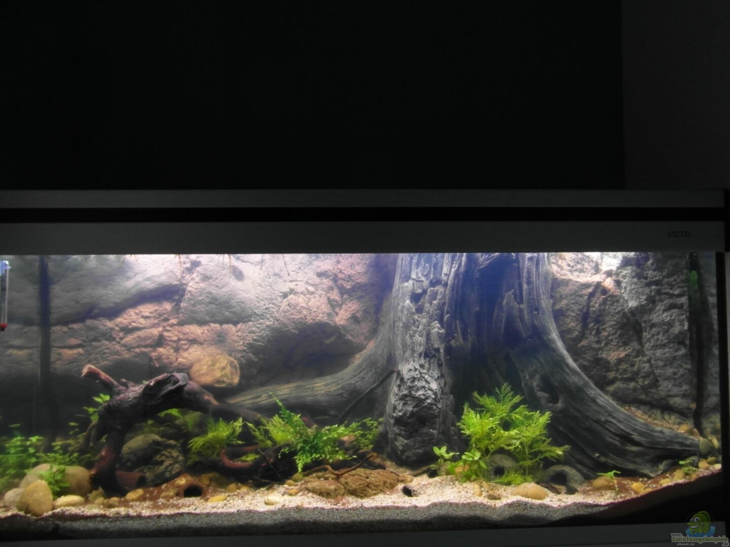Hinterschwimm, kriech- und krabbelbare Rückwand, welche an den unteren und seitlichen Kanten nur punktuell mit JBL Haru verklebt wurde. Das Wasser kann somit u.a. durch die entstandenen "Verklebelücken" zirkulieren. Darüber hinaus ist der hintere Bereich der Rückwand durch einen 7 x 5 cm gro??en Durchgang zugänglich, welcher sich im linken unteren Bereich befindet. Auch hier gelangt Wasser hinter die Rückwand um einem Stillstand des Wassers entgegen zu wirken.