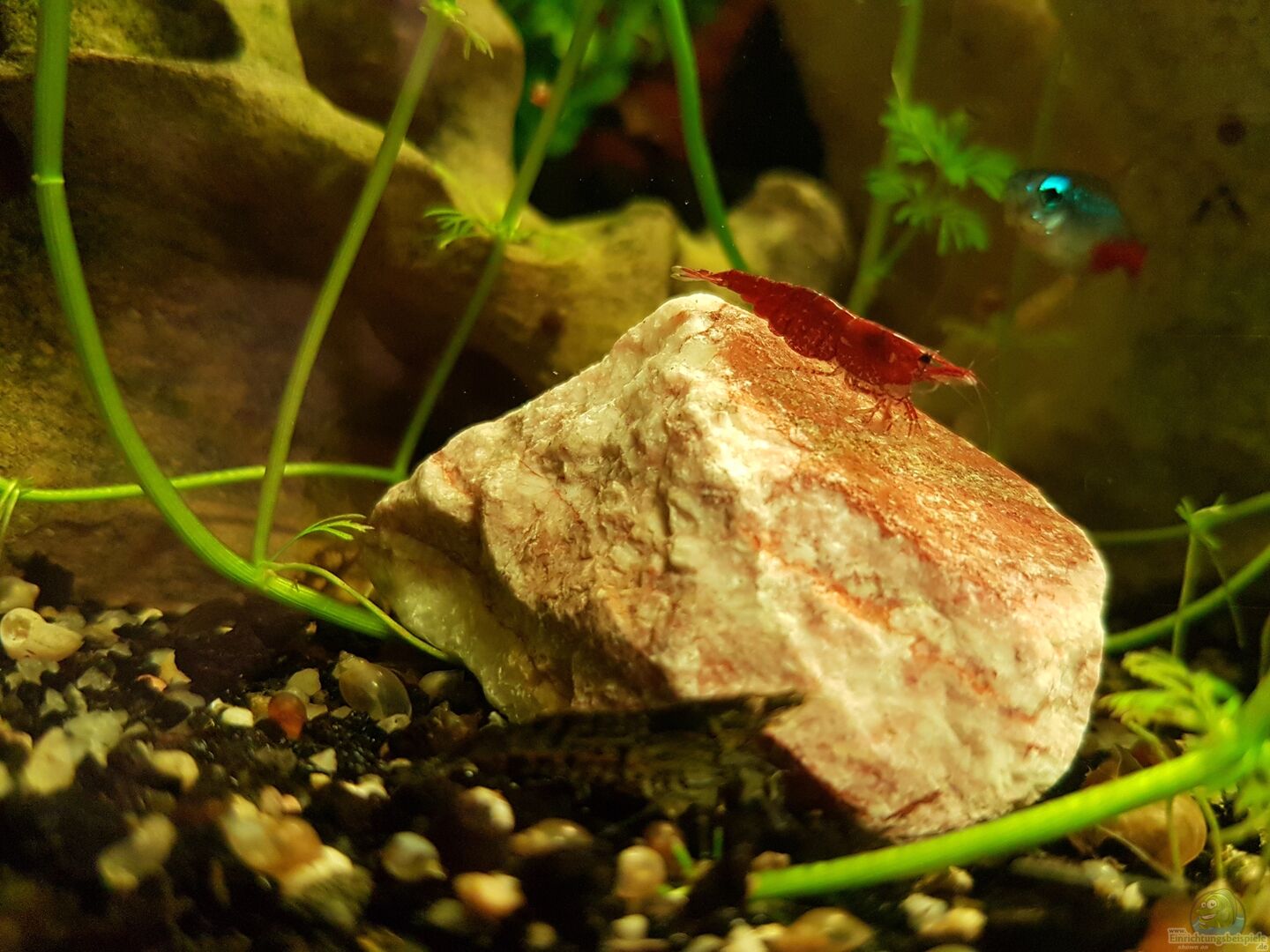 25 Tetra Neons 15 Endler Guppy 15 Red fire Garnele, 5 Blue Vavet Garnele. Garnelen haben sich untereinander gekreuzt, manche sehen echt cool aus manche eher weniger cool. Blaue Posthornschnecke Rote Posthornschnecke
