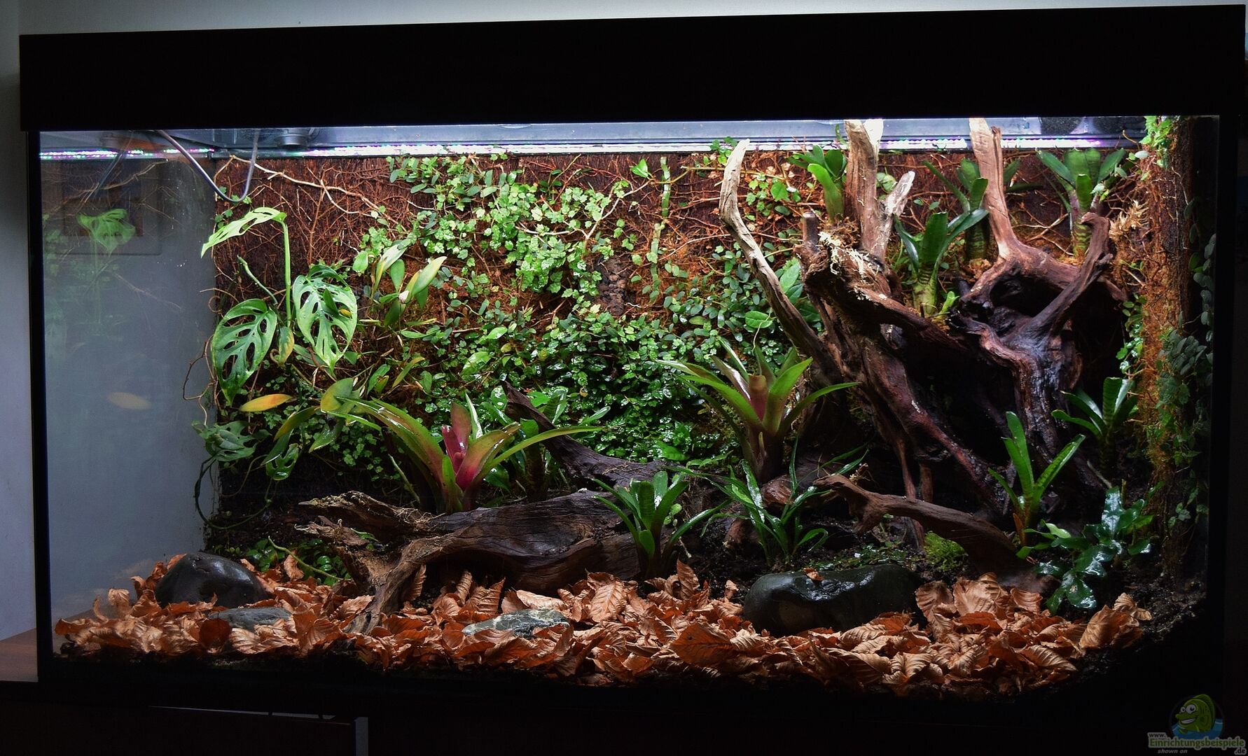 Das Becken hiess vorher "Im Reich der Halbkopfschnäbler und Pferdekopfschmerlen und wurde Anfang dieses Monats umgebaut. Die Fische sind alle gut in meinen anderen Becken untergekommen. Die bewachsene Rückwand des Beckens ist erhalten geblieben und so hoch mit Erde aufgefüllt worden, dass das Xaxim Kontakt mit ihr hat und weiter nass gehalten wird. Die Wurzeln sind also direkt im Wasser hängend auf Erde umgestellt worden. Hatte ein bisschen Angst ob die Umstellung klappt, aber bisher bleiben [...]