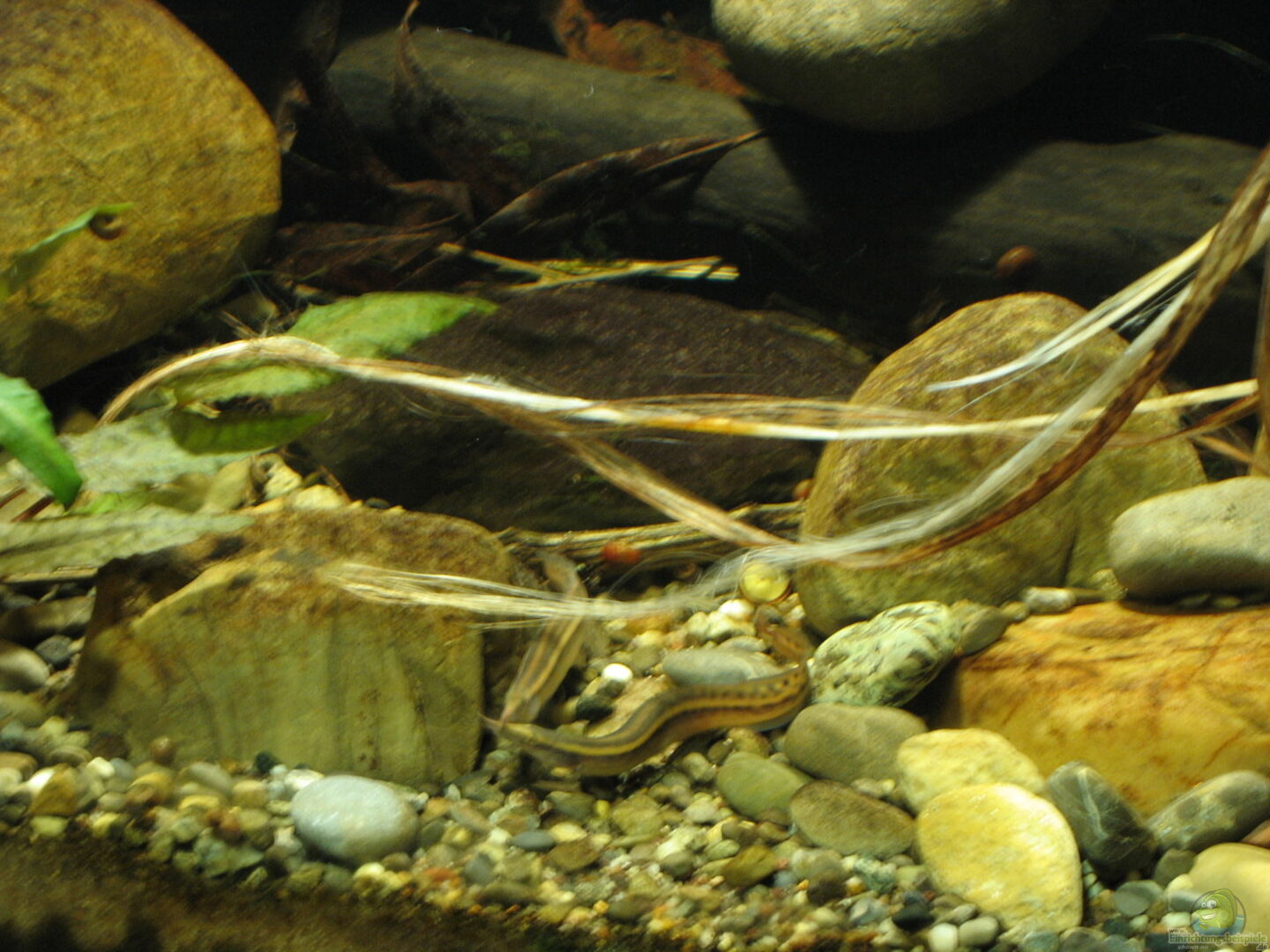 Fische: 10 Puntius denisonii Die Haltungsparameter werden im Allgemeinen folgenderma??en angegeben: Temperatur 15-26° C, PH 6, 5-7, 5, GH bis 20°, wobei ich die GH in dieser Höhe doch recht hoch finde. Ernährung: Omnivor, doch sollte der pflanzliche Anteil überwiegen Die Haltung gilt als nicht schwierig, allerdings sollen die Tiere zur Schreckhaftigkeit neigen. Die Schreckhaftigkeit hat sich bei mir allerdings sehr schnell gelegt. 21 botia striata Die Haltungsparameter werden [...]