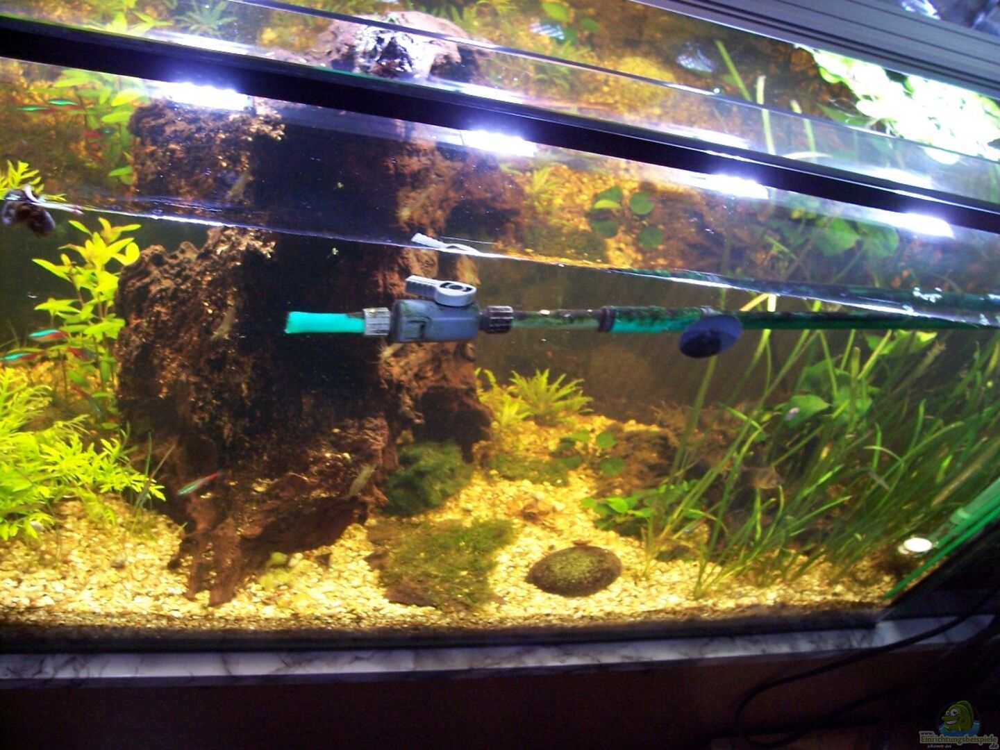 Das Becken dient als Raumteiler. Es ist von EFS aus 8 mm Floatglas mit zwei längs Verstrebung und Sicherheitsnaht, unter dem sich eine Thermo Unterlage 6 mm befindet. Der Unterbau besteht aus Aluminiumprofil 40 x 40 mm und ruht auf 8 Stützen mit Stellfüßen. Die Beckenplatte ist aus Sperrholz 21 mm mit Klebefolie mit Marmor Dekor und die Einlegeböden und Verkleidung sind aus 19 mm Spanplatte, von Vorne mit 3 Teile Vorhang. Beckenplattemaß: 144 x 44 cm Gestellmaß: 140 x 35 x 68 cm 16.09.22 [...]