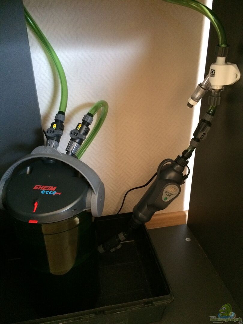 * Eheim Skim 350 mit Garnelen/Schneckenschutz im Ansaugtrichter * 6fach Steckdosenleiste mit Ueberlastungsschutz, jeder Verbraucher ist einzeln schaltbar * Simu-Lux LED Steuerung 5 Kanäle (Steuerungszeiten siehe unter Beleuchtung) * Dennerle Quantum 300 mit Nachtabschaltung (Magnetventil) CO2 Zugabe erfolgt 30 min. nach einschalten der Beleuchtung und endet 30 min. vor Abschaltung der Beleuchtung * 2 Kg CO2 Vorratsflasche * JBL Hochleistungs Direktdiffusor * [...]