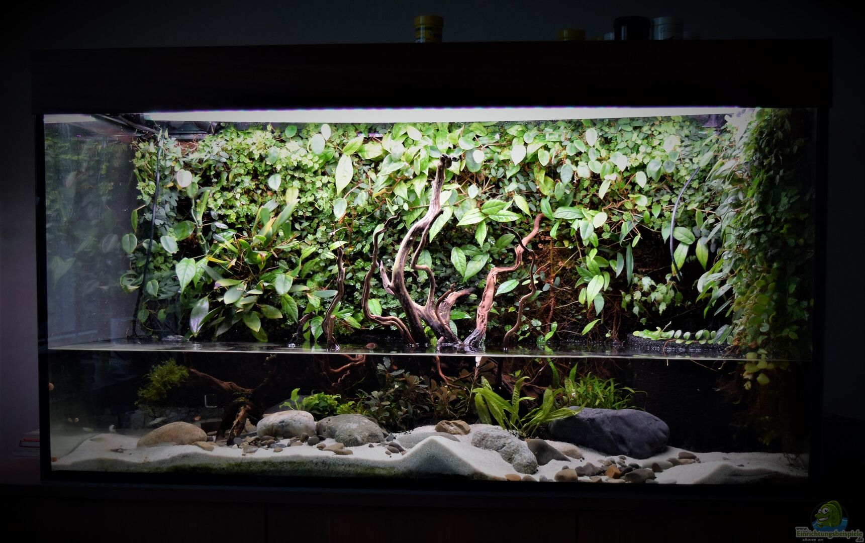 Die Besonderheit bei diesem Becken liegt an seinem relativ niedrigen Wasserstand von ca. 22 cm, aber einer doch recht grossen Grundfläche. Die Rückwand besteht aus mit Silikon verklebten Xaximplatten. Das Becken samt Rückwand gibt es schon länger, seit ca. 5 Jahren, und wurde bisher 2 mal umgestaltet. Das Becken hiess vorher Along the riverside. Das Problem war, dass der Wasserstand zu niedrig, und dass aufgrund des Landteils das Wasservolumen zu gering war. Auch war mir die Pumpenleistung, der [...]