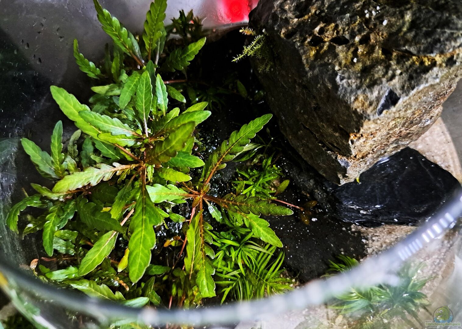Das angegebene Volumen bezieht sich auf das Glasbecken in dem zur Zeit die meisten der Gläser untergebracht sind. Das Hauptbild zeigt einen Teil von zur Zeit Gefäßen. 1 Liter Fassungsvermögen musste ich vom System her mindestens angeben. In jedem der Gefäße befinden sich real maximal 2 Zentimeter hoch Wasser. Es ist mein erster Versuch mit "richtigen" Wabi Kusas. Im Moment befinde ich mich absolut im Experimentierstadium. Ich hätte nie gedacht, das Pflanzen so spannend sein [...]