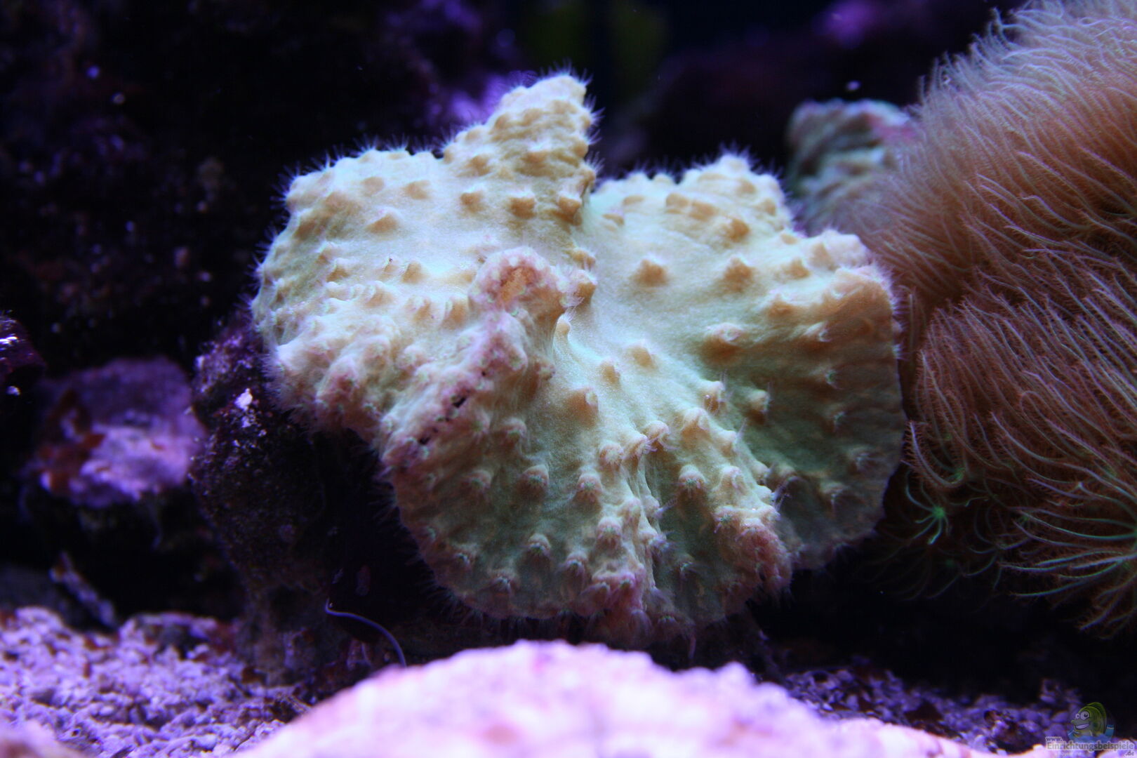 2 x Amphiprion ocellaris - Falscher Clown - Anemonenfisch 1 Synchiropus stellatus - Sternen-Mandarinfisch 3 x Calcinus laevimanus - Großscheren-Einsiedlerkrebs verschiedene Scheiben- und Krustenanemonen 1 x Entacmaea quadricolor - Blasenanemone verschiedene Acropora Caulastrea furcata Acanthastrea Montipora "Superman" Capnella imbricata ??? Keniabäumchen grün und lila Gorgonien Chalice Sinularia brassica grün