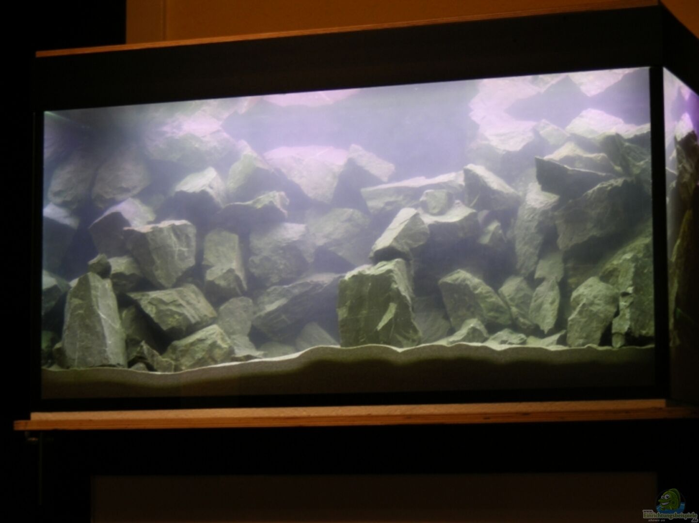 Unterschrank Eigenbau Aquarium steht auf 20 mm Styroporplatte (um Unebenheiten auszugleichen)