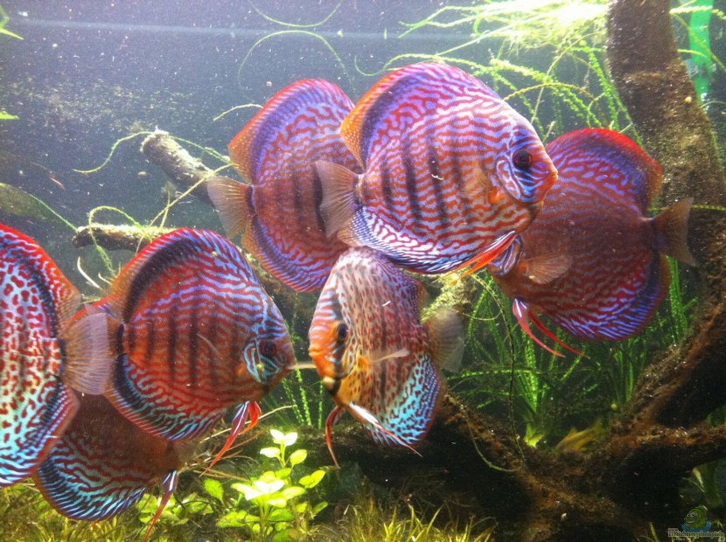 11 Symphysodon aequifasciatus 8x Rottürkis und 4 x Green Red Spottet aus der Diskuszucht Piwowarski Er wird als `König der Aquarienfische` bezeichnet, da er durch seine ruhige Schwimmweise sehr majestätisch wirkt. Der Name Diskus steht für den besonders abgeflachten und fast runden Körper mit niedrigen, aber sehr langen Flossen. Der Mund ist winzig. Beide Geschlechter können bis zu 22 cm lang werden, wobei so um die 16 - 18 cm der Durschnitt sein dürfte, und lassen sich nur [...]