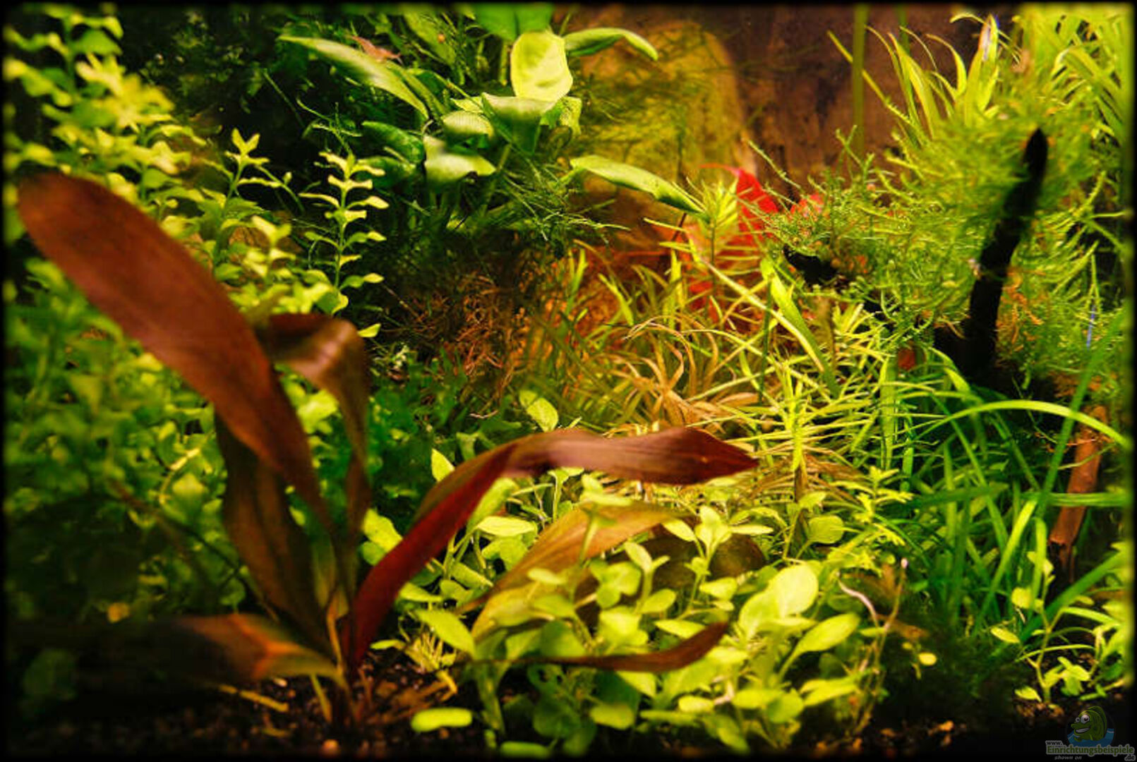 Es handelt sich hier um ein Standrdbecken mit gewölbter Front, gefertigt aus 4 mm Glas, verklebt mit schwarzem Silikon. In das Becken habe ich eine 3D-Rückwand in Stein/Wurzel-Optik eingeklebt, deren Tiefe im Becken beträgt 2 - 8 cm. Im oberen Bereich der Rückwand wurde eine kleine Pumpe eingeklebt, da der Raum hinter der Wand als Filter genutzt wird. Deshalb wurde die Rückwand einseitig mit Silikon verklebt, steht unten auf 2 Silikonstützen und ist oben an einer Stelle links fixiert. Links [...]