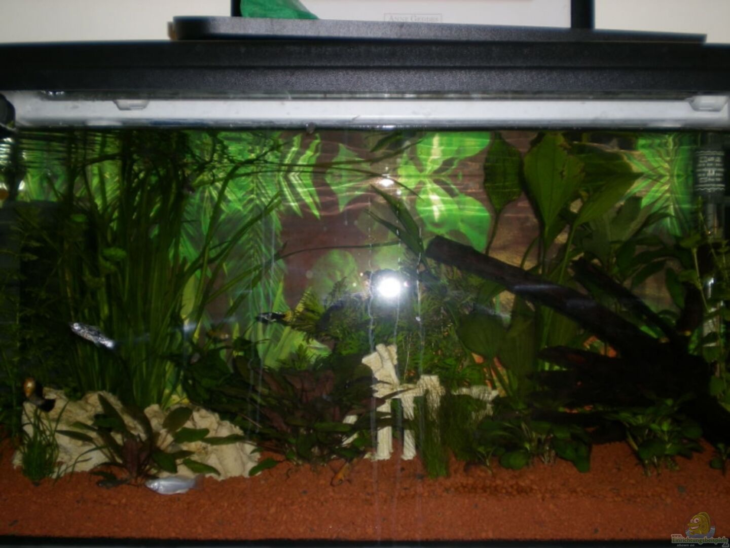 Komplettaquarium von Mp mit Varilux-Abdeckung Rückwand: Fotofolie von au??en verklebt
