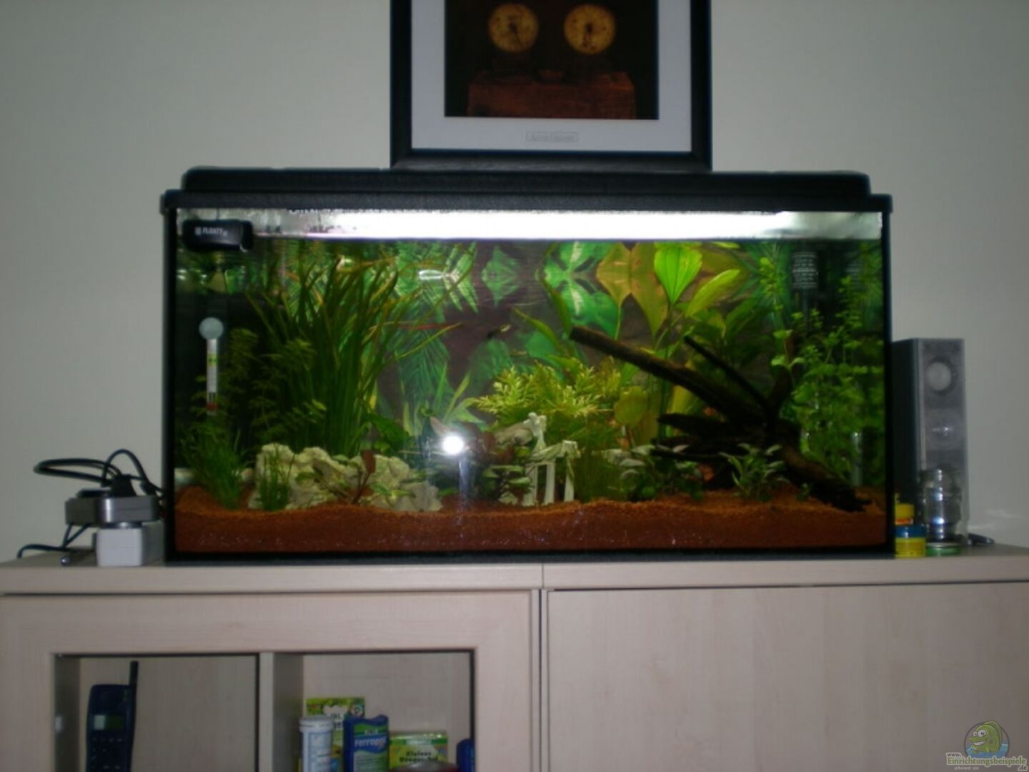 Komplettaquarium von Mp mit Varilux-Abdeckung Rückwand: Fotofolie von au??en verklebt