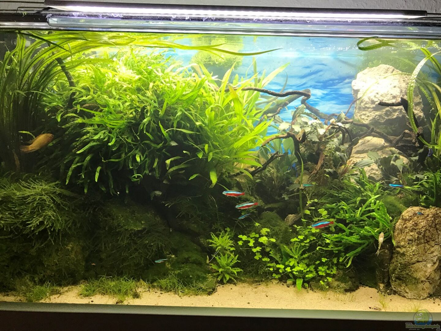 Ich habe mir ein Weissglas AQ zugelegt, da hier die Farben der Fische und Pflanzen noch besser "rüberkommen". Habe mir im Nachgang von meinem Schreiner noch einen neuen Unterschrank bauen lassen.