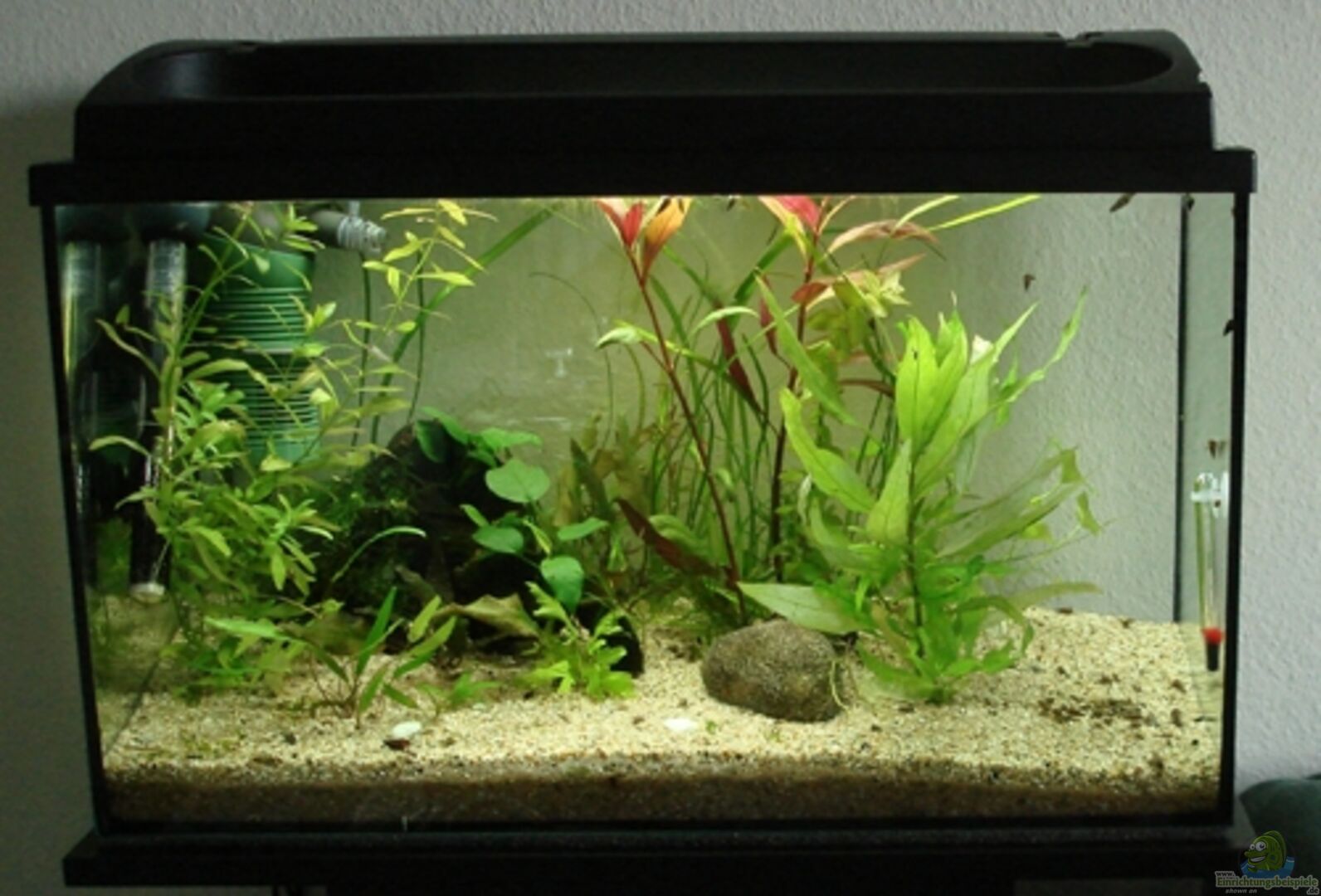Normales Vollglas-Aquarium - - - Die Gesamt-Laufzeit des Aq. ist unklar. Das Aquarium habe ich gebraucht übernommen, samt Pflanzen, Schnecken und Endler-Guppys. Ich habe es neu eingerichtet und es läuft bei mir seit dem 15/07/2013. Amanos und Otos kamen dazu. Die Ohrgitterharnischwelse lebten vorher im Nano-Becken "1001 Shades of Green", einem zu engen Daheim ...