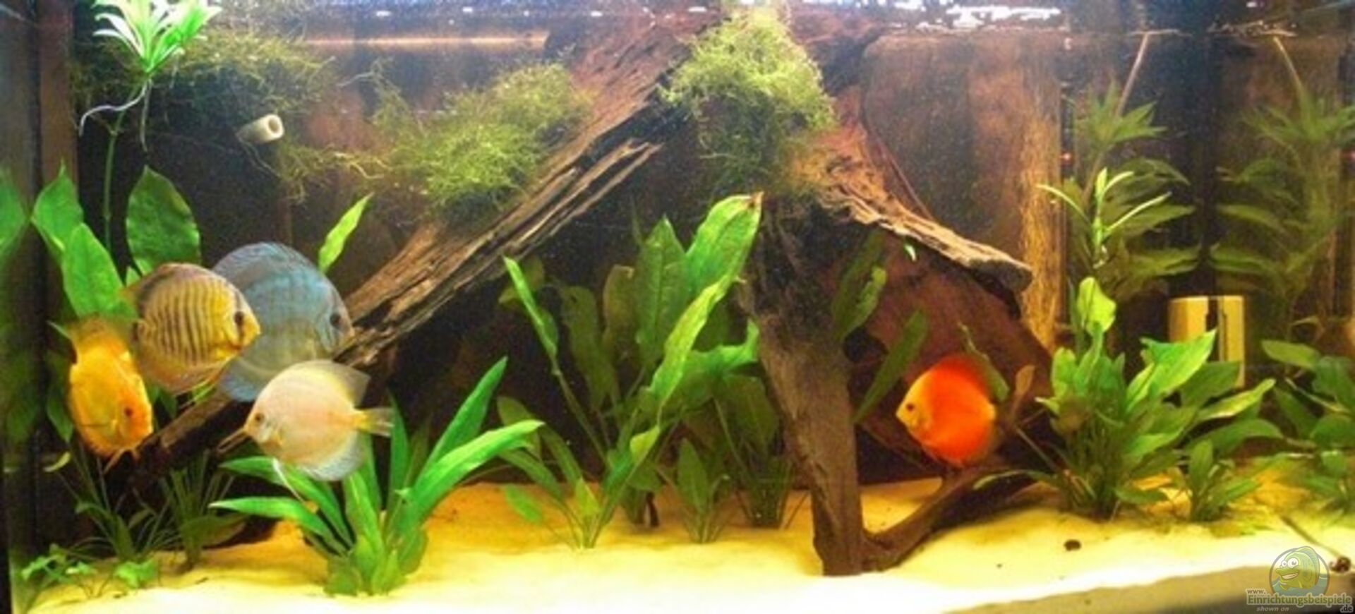 - Selbstgebaute ??berlaufkonstruktion und 112l-Filterbecken. So sind es insgesamt 472l Wasser. - Selbstgebauter Unterschrank aus Buche, innen ein Gerüst aus Latten, damit das Filterbecken Platz findet. - Foto-Rückwand Amazonas (Um mehr Schwimmraum zu haben, ganz bewusst auf 3D-Rückwand verzichtet)