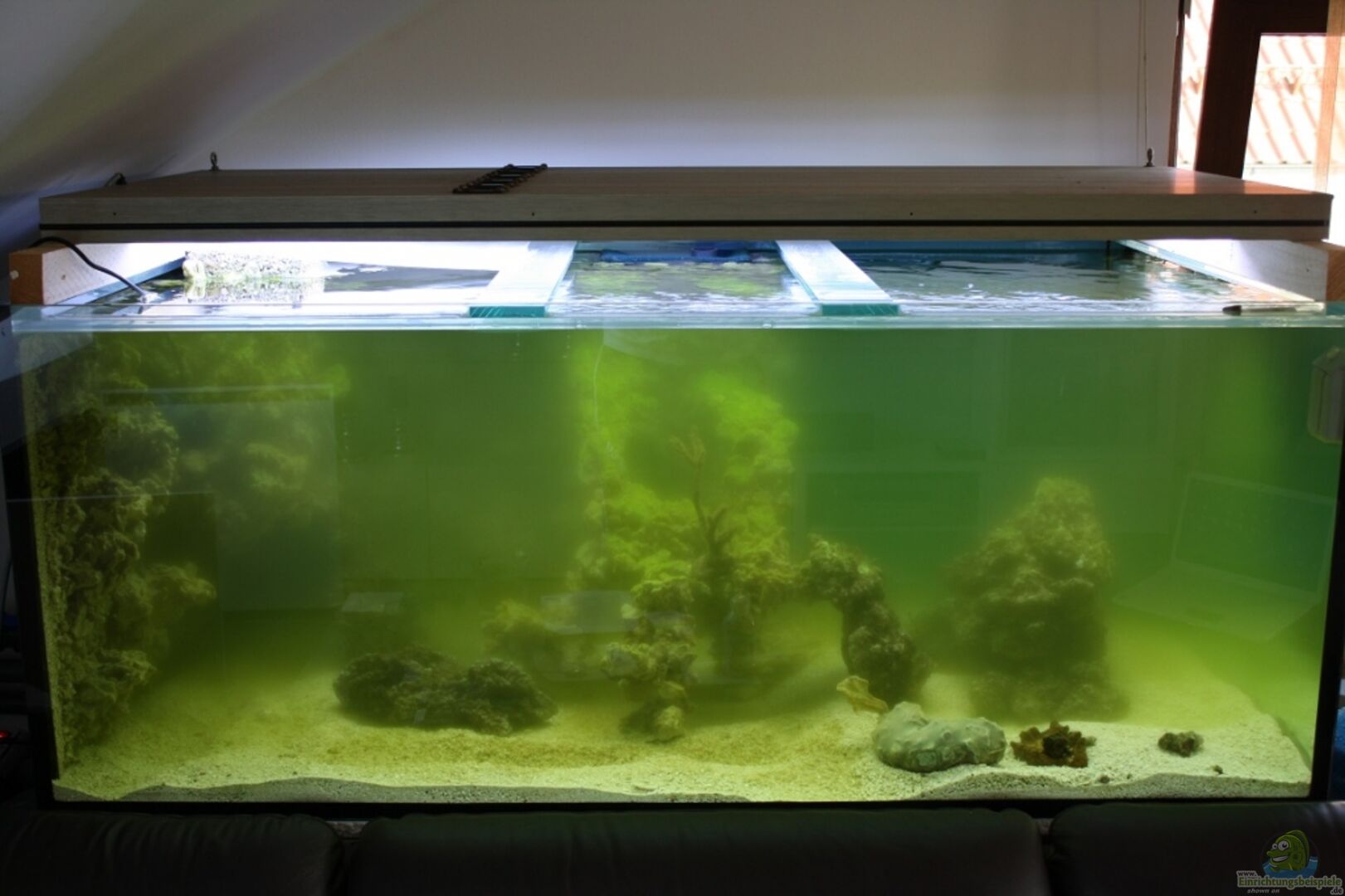 linke RW: Atoll-Riff-Deko Schachtverkleidung: Atoll-Riff-Deko mit Riffpfeilern ca. 50cm nach vorne rechte RW: Freiwasserbereich mit blauer RW und einem Riff aus LS linke Seitenwand: Atoll-Riff-Deko mit Wavebox- und Streamverkleidung insgesamt ca. 30 kg LS