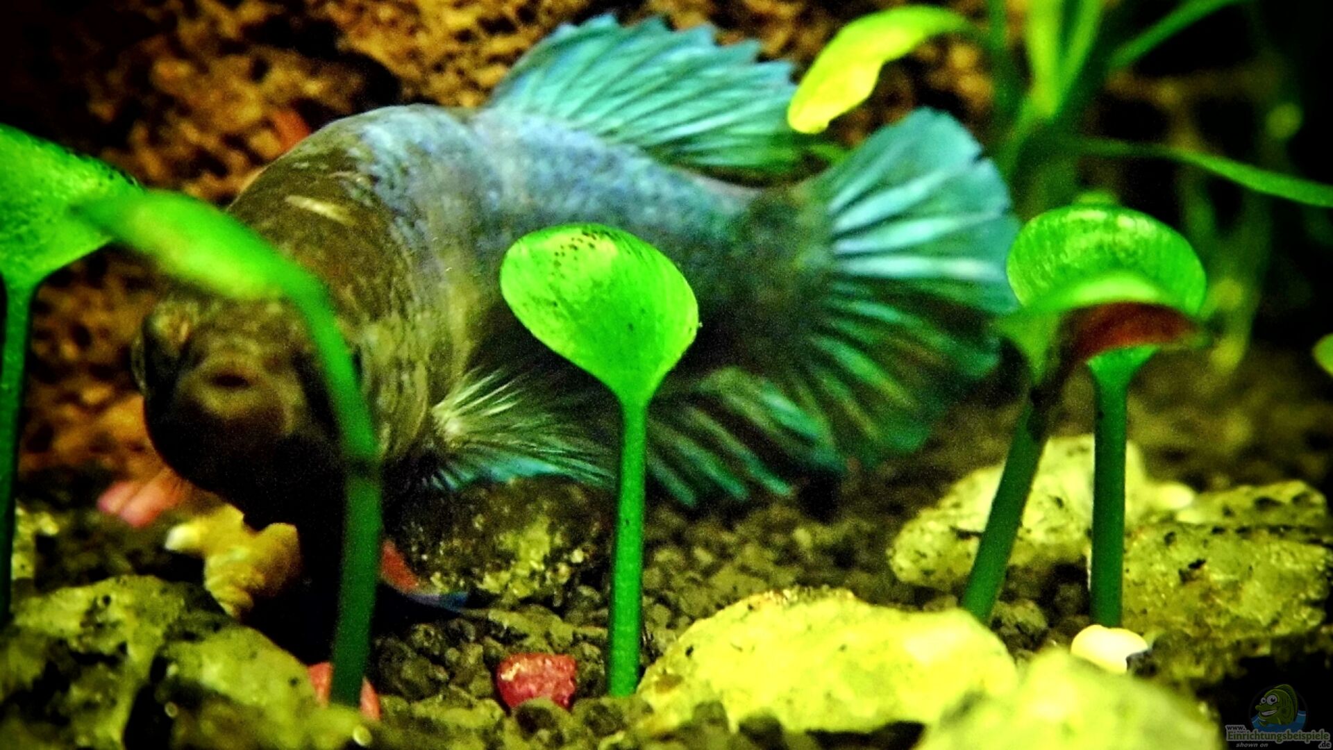 Siamesischer Kampffisch - Betta splendens 1M/5W Wegen den vielen Versteckmöglichkeiten ist z.Z. der hohe Besatz ohne Probleme möglich. Familie: Makropodenähnliche (Belontiidae) Unterfamilie: Makropodenartige (Macropodusinae) Grö??e: 5 - 7 cm Alter: ca. 3 Jahre* Geschlechts : Männchen ist farbiger) und mit deutlich grö??ere Flossen ( obwohl die heutigen Züchtungen auch bei weiblichen Tieren ein erhöhtes Farb - und Flossenspektrum ermöglichen ) Futter: Lebend- [...]