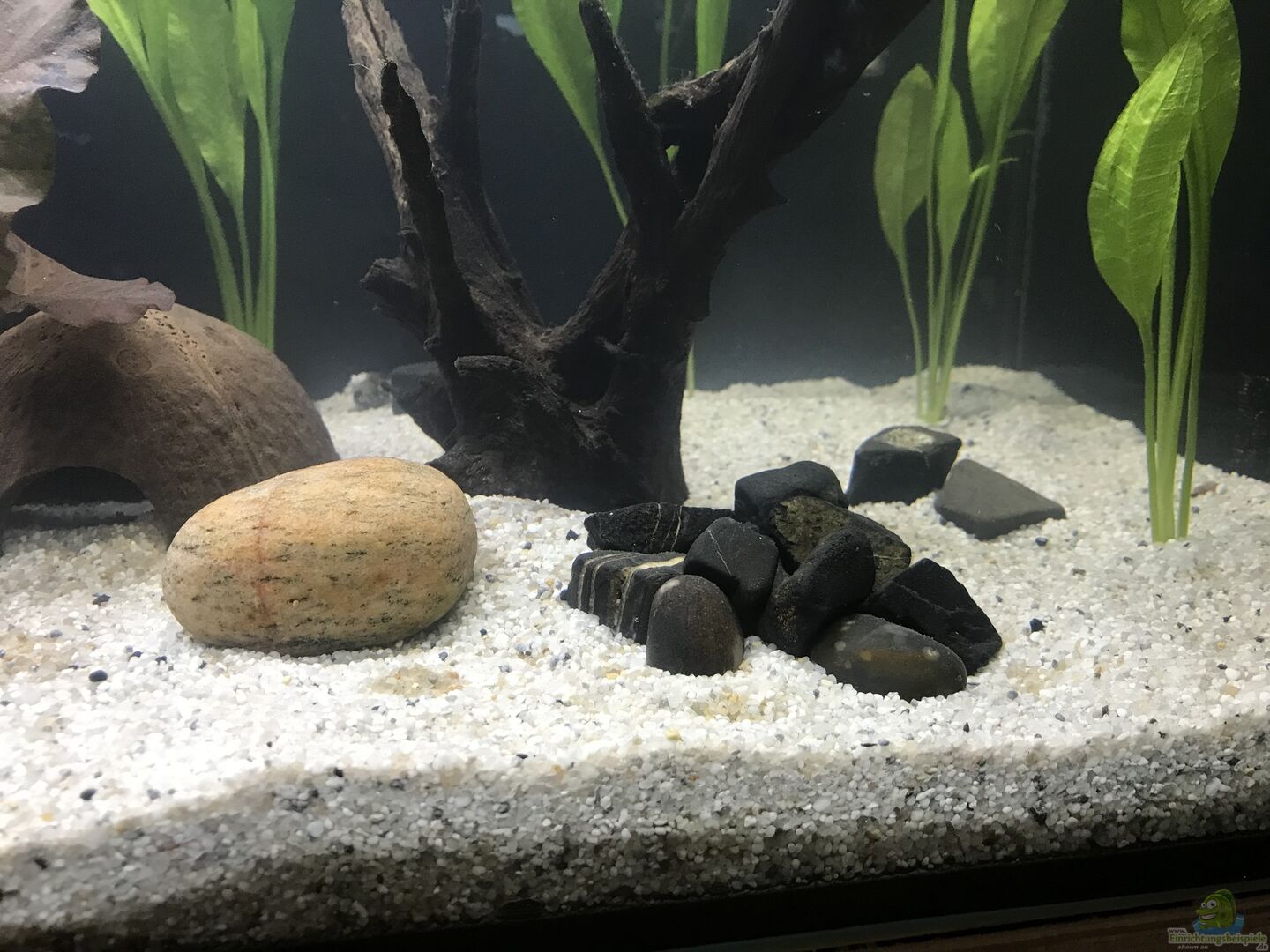 * 2 Moorkienwurzeln * 1 Tonhöhle für die Synodontis lucipinnis * 1 Kokosnusshöhle für die Pelvicachromis taeniatus * einige mittlere Kieselsteine aus der Ostsee (wurden am 18.11.24 entfernt und durch drei mittlere Grauwackensteine ersetzt). * drei mittelgroße Grauwackensteine * einige kleine schwarze Kieselsteine in größeren Gruppen am Boden * die Seitenwände und die Rückwand sind mit schwarzer Folie beklebt * einige Erlenzapfen * Buchen/Eichenblätter/Seemandelbaum [...]
